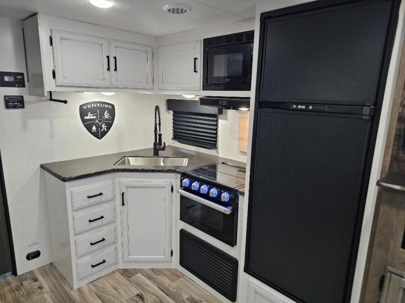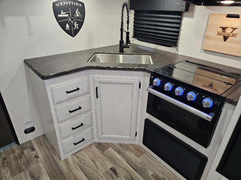 This award-winning travel trailer offers a perfect mix of practicality, modern design, and premium features. With its versatile floorplan, spacious bathroom, and indoor/outdoor entertainment options, the SR261VRB is ready for anything from quick weekend trips to longer adventures. Built with Venture RV’s commitment to durability and innovation, this trailer ensures every journey is memorable and stress-free.