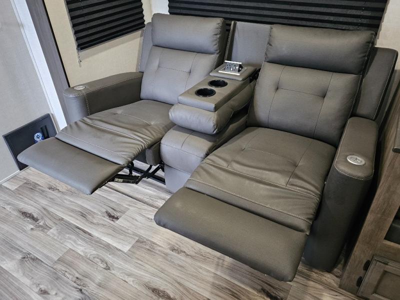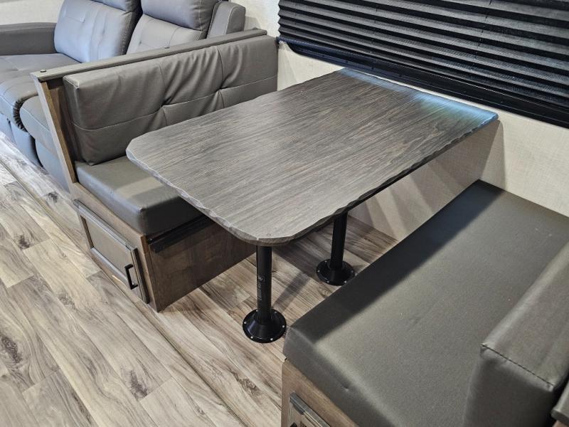 Theater seating and 42" booth dinette across from the entertainment center for relaxing evenings indoors