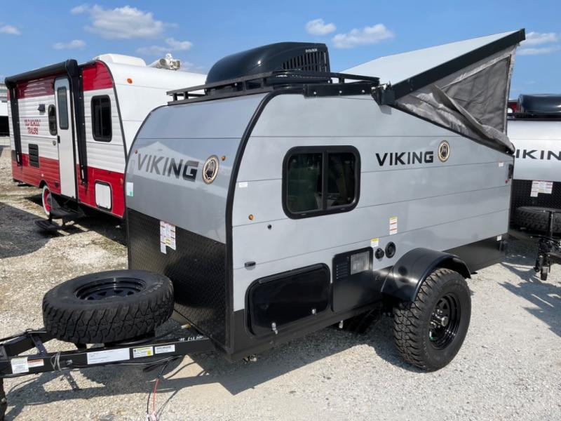 Make your camping life easier by choosing the Viking Express Series folding pop-up camper! The interior offers you 100% adhesion residential-grade linoleum, dark ash cabinetry, and residential laminated countertops. You'll also have 12V LED interior lights to help you see. The exterior is constructed with an E-coated tubular steel frame, and there are heavy-duty tongue jacks with wheels, Wide Trac ultra-lube spring axles, electric brakes, and radial tires. The laminated fiberglass roof and automotive-grade metal will protect the exterior for years to come.