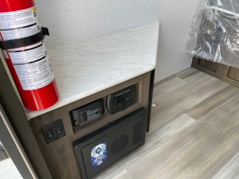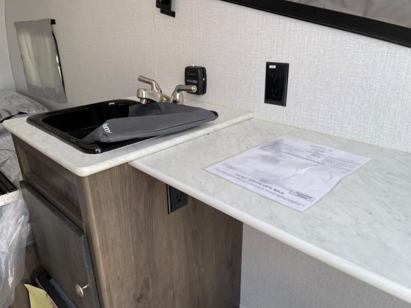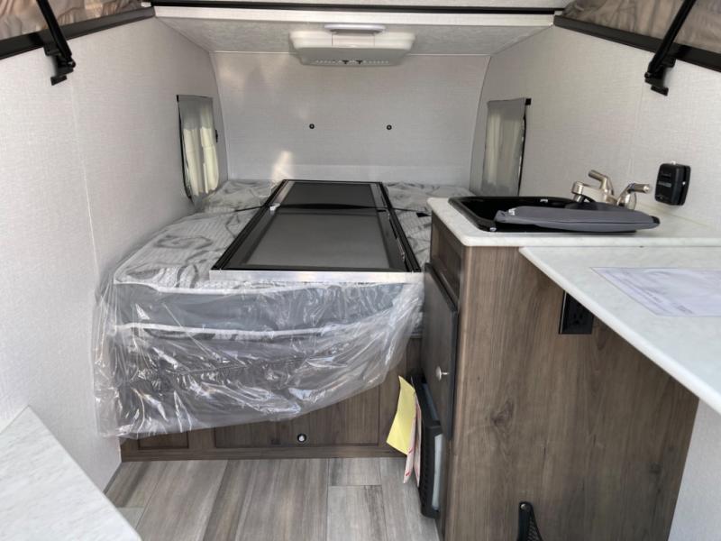 If you want to keep your camping trips on the minimal side, check out this Express Series folding pop-up camper! You can stay warm with the furnace, and you can wash your hands or your produce in the sink. There is a bench seat directly to your left when you enter, so you can sit down to tie your shoes. The countertop to your right when you walk in the door is able to hold items, or you can use it as a preparation area. The 54" x 74" bed will allow you to sleep in comfort each night without having to sleep on the cold, hard ground.