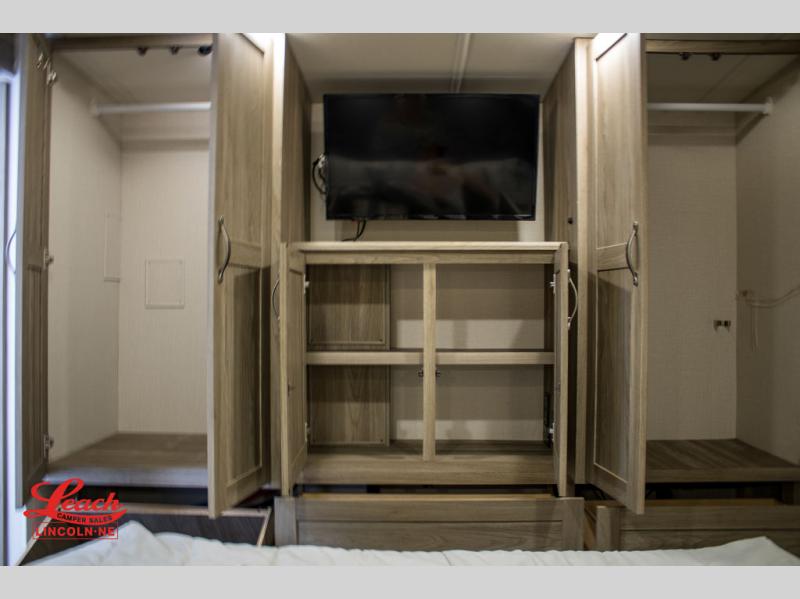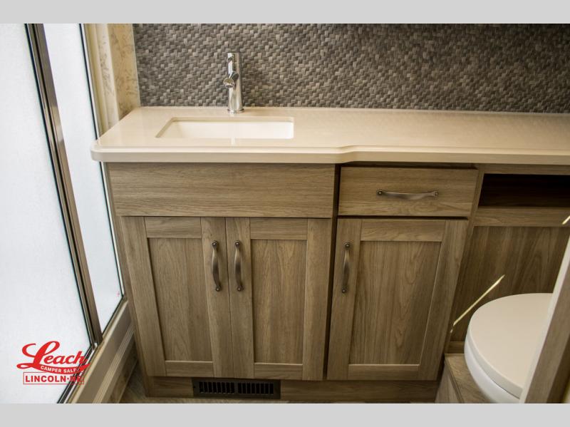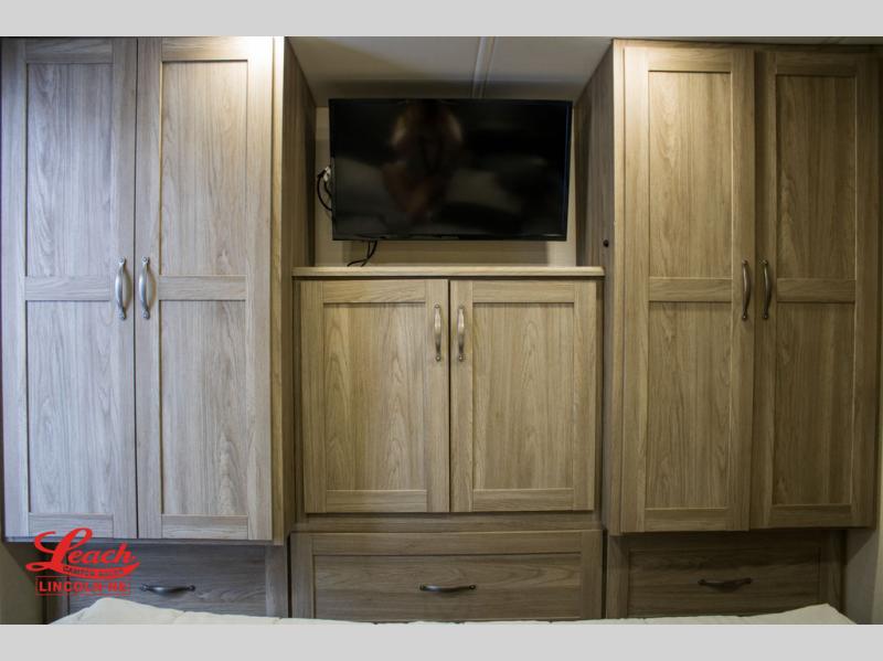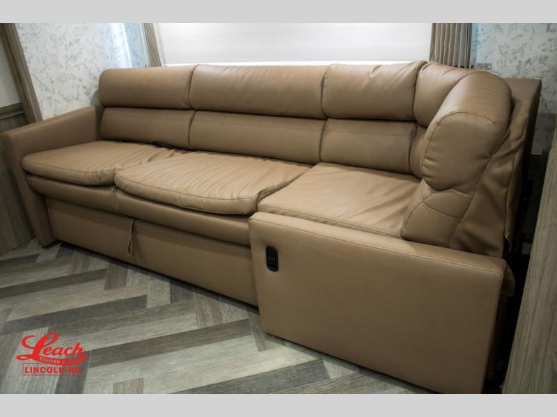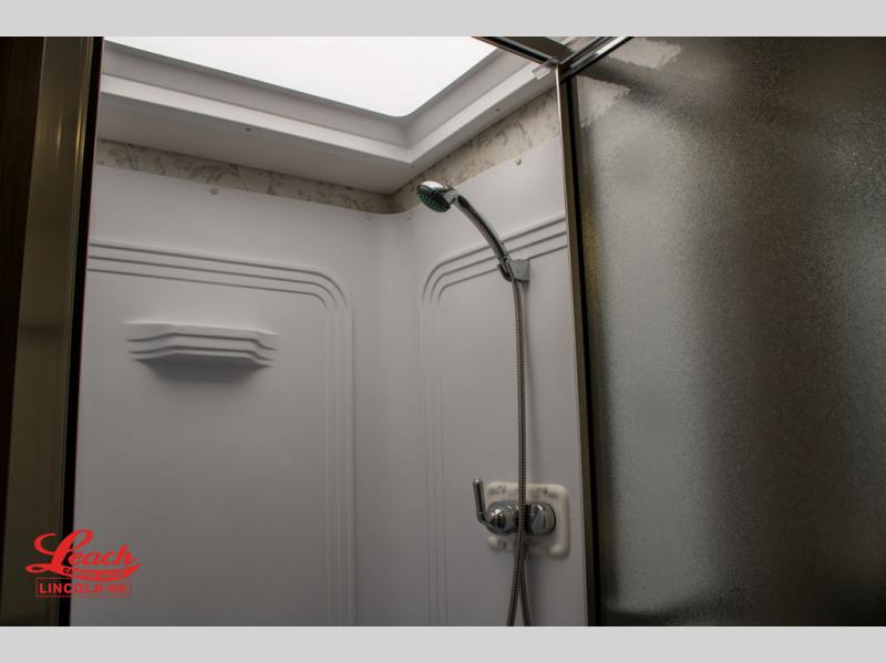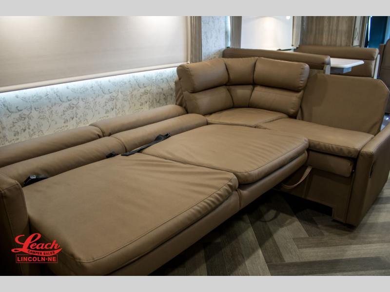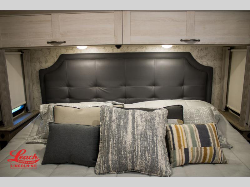 The family-friendly Adventurer Class A gas motorhome by Winnebago is the ultimate family getaway for your trips near and far. The swivel captain's seats include fixed lumbar support and multi-adjustable slide/recline for a truly comfortable ride. You will appreciate the Sony 9" TS radio with Bluetooth, a rearview and sideview monitor system with a color touch screen, SiriusXM ready, and more to make the drive easier than ever. The powered blackout roller visor/shade on the front windshield will provide privacy when you stop for lunch, and the dash workstation will come in handy when you've got a deadline. Each model includes residential vinyl flooring throughout, a soft vinyl ceiling, a Corian galley countertop, and ceramic tile backsplash. The under-bed storage will provide a place for your luggage, and you'll find lighted storage compartments outside for all your larger gear. The Sumo Springs front and rear suspension from SuperSprings International and steering stabilizer system will provide a smooth ride wherever the road takes you, and the exterior full-body is sure to turn heads!