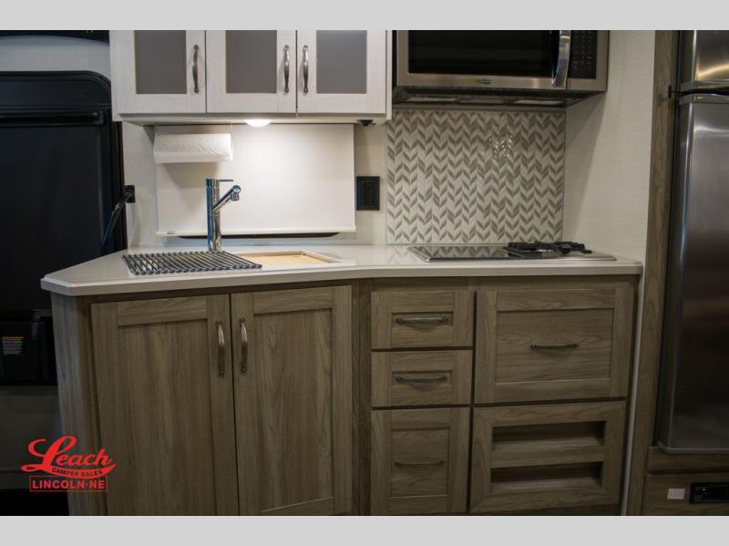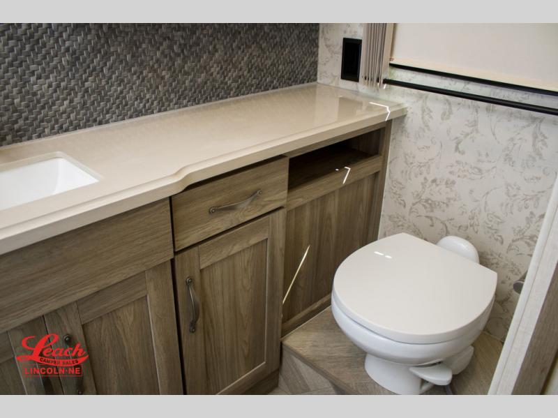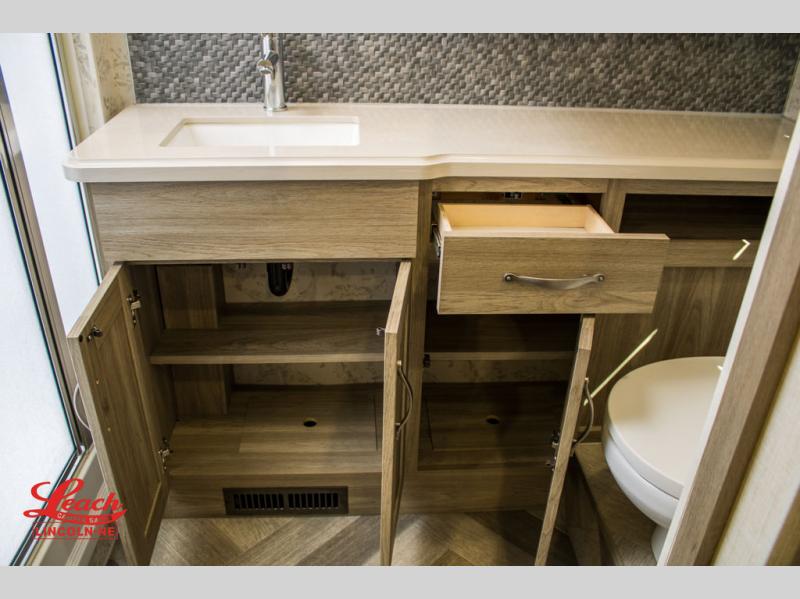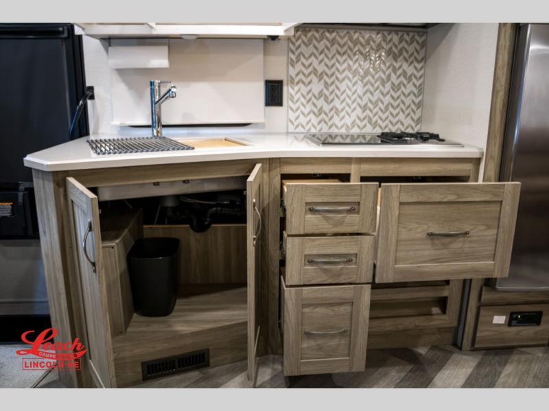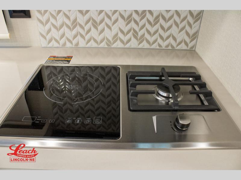 Traveling with your family or larger group will be so easy in this spacious Adventurer Class A gas motorhome. The full and half bath are sure to come in handy, and you'll find plenty of seating space for everyone with the extendable sectional sofa. Once the chef has prepared lunch on the gas/induction range top, the kids can enjoy it at the dinette with a Hi-Lo table, and the adults can take their plate outside to sit under the 16' power awning. Whether you're watching a movie on the 39" HDTV or just enjoying the glow of the electric fireplace, you will truly enjoy your time spent in this coach. The master bedroom includes a king bed slide, dual wardrobes and nightstands, and a space to add an optional washer and dryer if you choose. And if you need additional sleeping space, just choose the optional StudioLoft bed!
