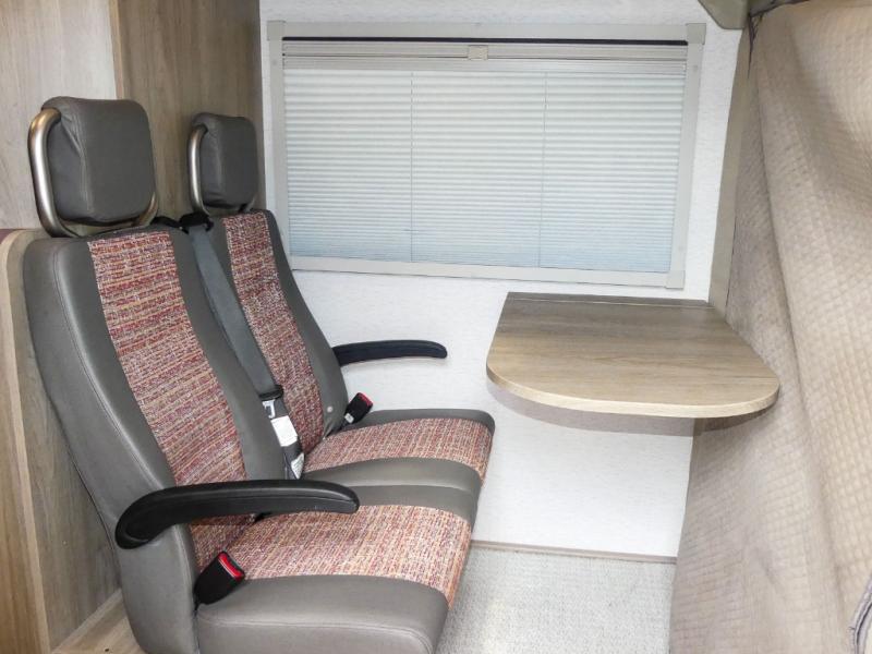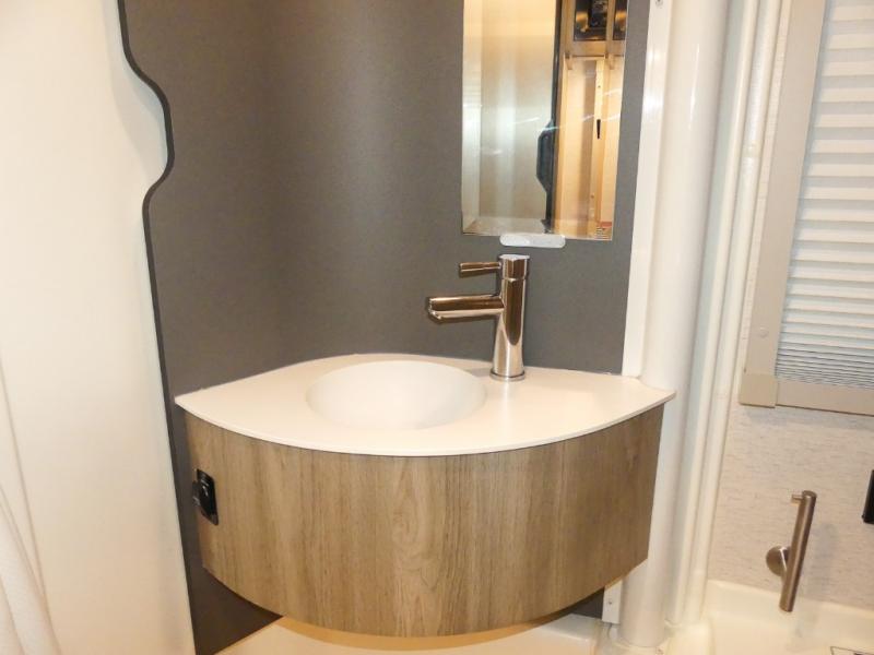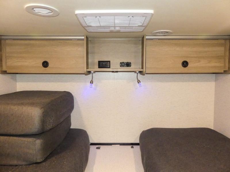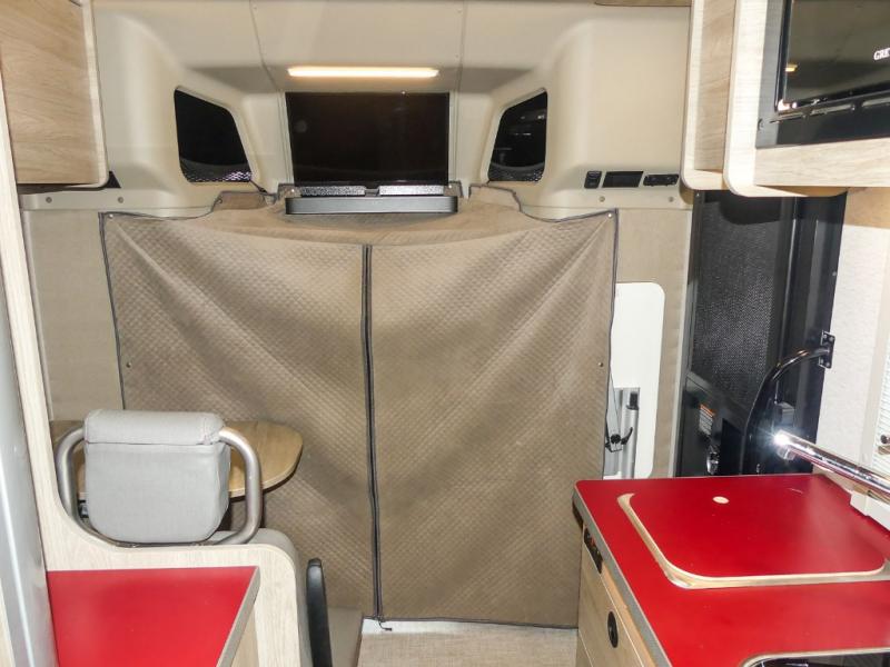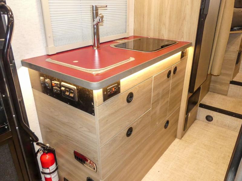 This Ekko all-wheel drive Class C gas motorhome is just unbelievably functional! Not only do you have plenty of storage space including a gear garage, under-bed storage, pantry, and 5.3-cubic foot refrigerator, but you also have a 24" x 30" wet bath with a pivoting lavatory wall so that you can stay clean without having to stop at rest areas along the way. The cab area is appointed with a radio/rearview monitor system, swivel/recline cab seats, and many driving safety features. Since the cab seats can swivel, you can use them as another place to sit down and eat at the fold-down table, and you can also use the swivel/adjustable work table for the passenger cab seat or as an extended countertop in the kitchen.
