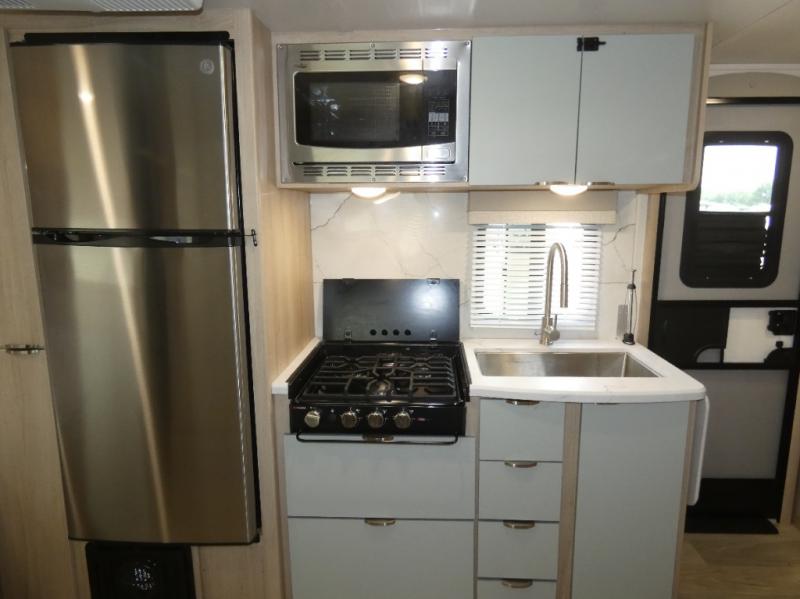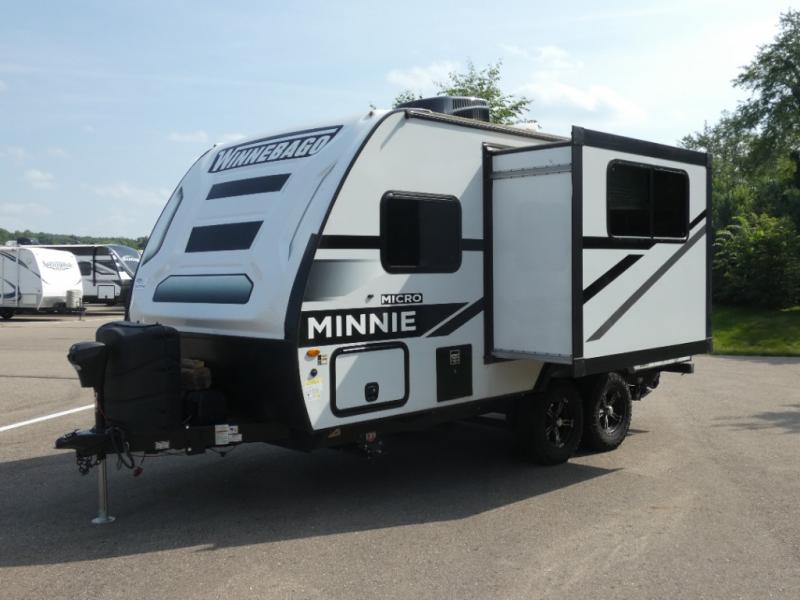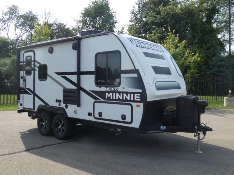 Start out on your boundless journey in one of these Winnebago Industries Towables Micro Minnie travel trailers! Towing is made simple with the 7' width to keep your Micro Minnie in your rear-view mirror. They don't lack in features either although they are compact in size. The spacious galley including a sink, refrigerator, two burner cooktop, and even a microwave oven allows you to cook without compromise. You will not only enjoy the entertainment found indoors with an LED TV, a JBL premium sound system and Aura Cube high performance mechless media center, but outdoors you will also enjoy the JBL premium speakers and a power awning with LED lighting. Each model also comes with flexible exterior storage to make packing quick and easy. What are you waiting for, come choose your model today!