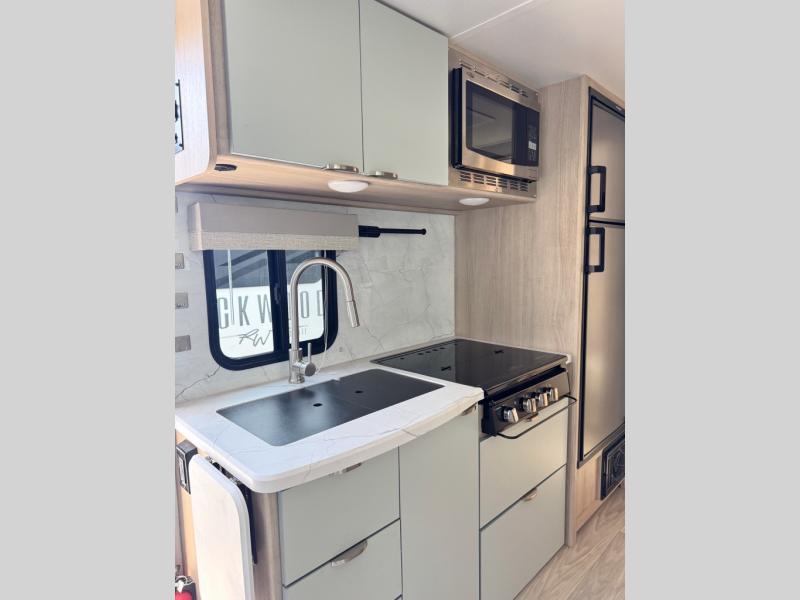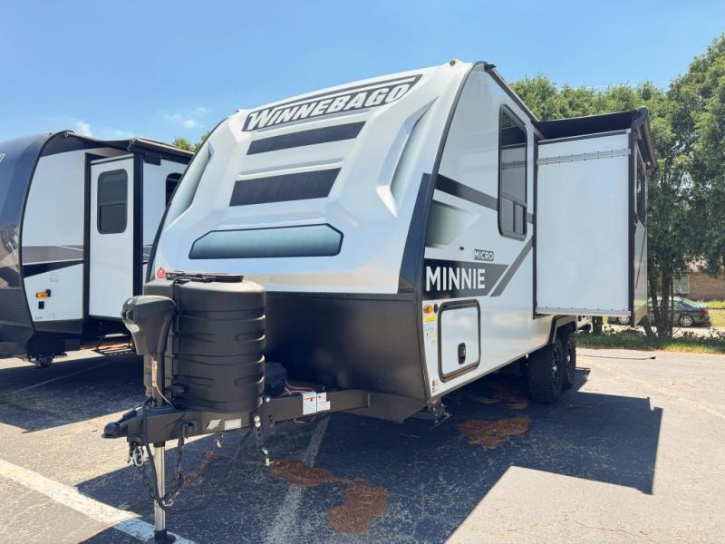 Start out on your boundless journey in one of these Winnebago Industries Towables Micro Minnie travel trailers! Towing is made simple with the 7' width to keep your Micro Minnie in your rear-view mirror. They don't lack in features either although they are compact in size. The spacious galley including a sink, refrigerator, two burner cooktop, and even a microwave oven allows you to cook without compromise. You will not only enjoy the entertainment found indoors with an LED TV, a JBL premium sound system and Aura Cube high performance mechless media center, but outdoors you will also enjoy the JBL premium speakers and a power awning with LED lighting. Each model also comes with flexible exterior storage to make packing quick and easy. What are you waiting for, come choose your model today!