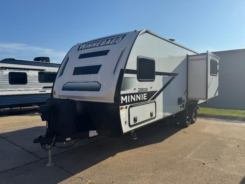 Start out on your boundless journey in one of these Winnebago Industries Towables Micro Minnie travel trailers! Towing is made simple with the 7' width to keep your Micro Minnie in your rear-view mirror. They don't lack in features either although they are compact in size. The spacious galley including a sink, refrigerator, two burner cooktop, and even a microwave oven allows you to cook without compromise. You will not only enjoy the entertainment found indoors with an LED TV, a JBL premium sound system and Aura Cube high performance mechless media center, but outdoors you will also enjoy the JBL premium speakers and a power awning with LED lighting. Each model also comes with flexible exterior storage to make packing quick and easy. What are you waiting for, come choose your model today!