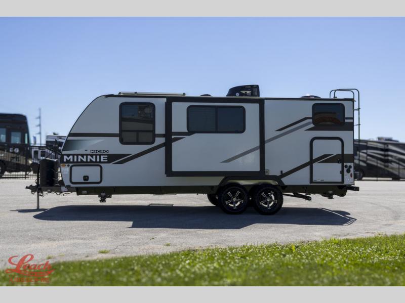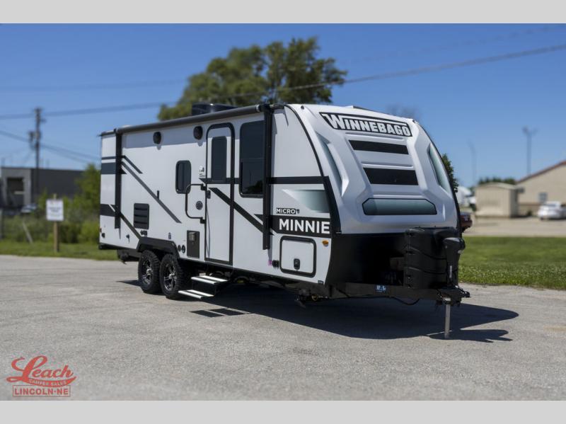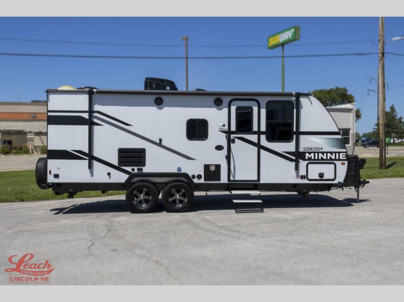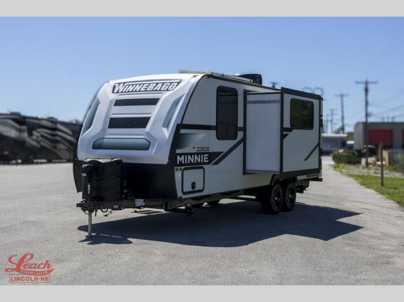 Start out on your boundless journey in one of these Winnebago Industries Towables Micro Minnie travel trailers! Towing is made simple with the 7' width to keep your Micro Minnie in your rear-view mirror. They don't lack in features either although they are compact in size. The spacious galley including a sink, refrigerator, two burner cooktop, and even a microwave oven allows you to cook without compromise. You will not only enjoy the entertainment found indoors with an LED TV, a JBL premium sound system and Aura Cube high performance mechless media center, but outdoors you will also enjoy the JBL premium speakers and a power awning with LED lighting. Each model also comes with flexible exterior storage to make packing quick and easy. What are you waiting for, come choose your model today!