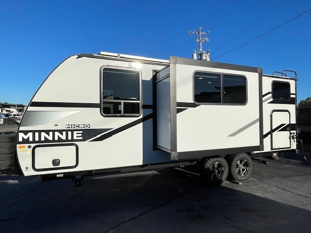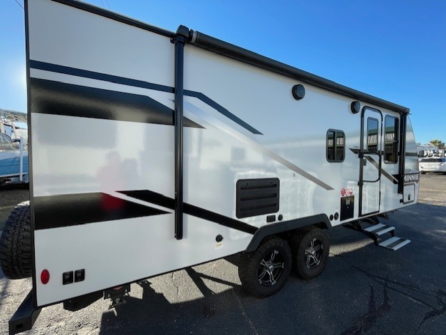 Start out on your boundless journey in one of these Winnebago Industries Towables Micro Minnie travel trailers! Towing is made simple with the 7' width to keep your Micro Minnie in your rear-view mirror. They don't lack in features either although they are compact in size. The spacious galley including a sink, refrigerator, two burner cooktop, and even a microwave oven allows you to cook without compromise. You will not only enjoy the entertainment found indoors with an LED TV, a JBL premium sound system and Aura Cube high performance mechless media center, but outdoors you will also enjoy the JBL premium speakers and a power awning with LED lighting. Each model also comes with flexible exterior storage to make packing quick and easy. What are you waiting for, come choose your model today!