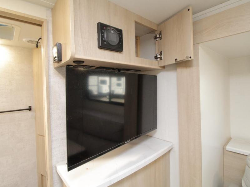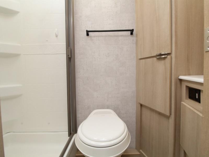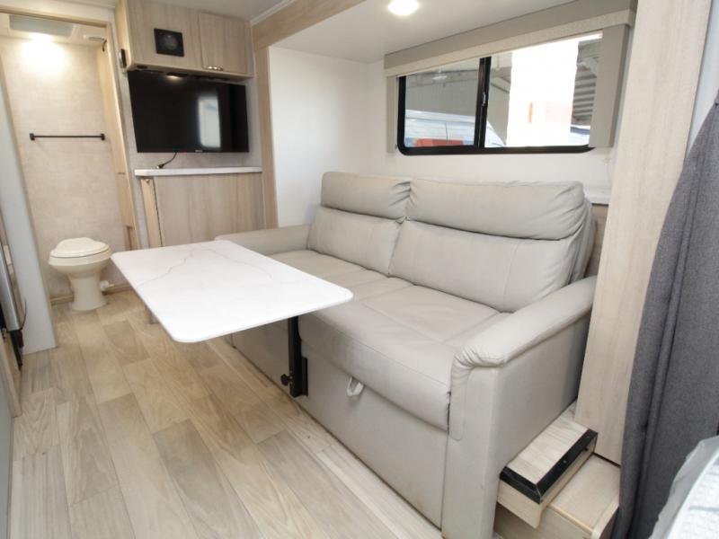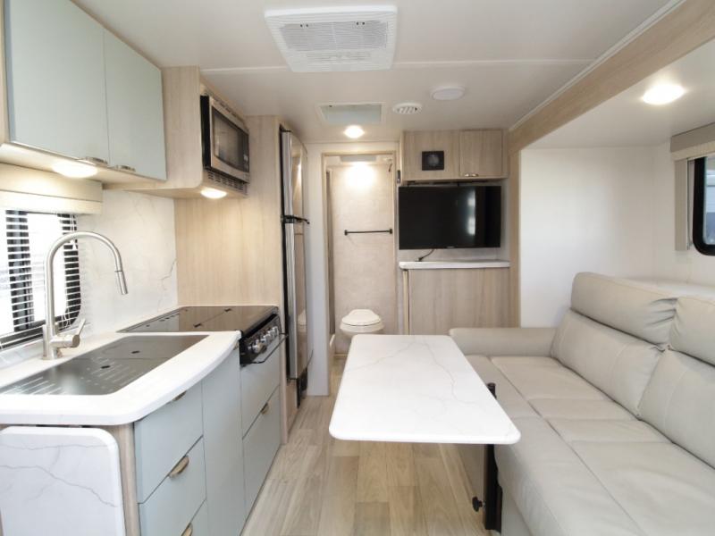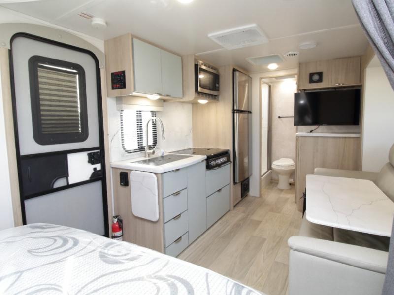 Rainy days are no issue thanks to the LED TV included for easy viewing from the dinette or bed. USB charging ports and a wireless charging pad keep your devices powered throughout your trip.