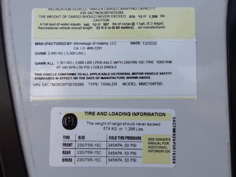 Used 2023 Winnebago Industries Towables Minnie 2108FBS Travel Trailer