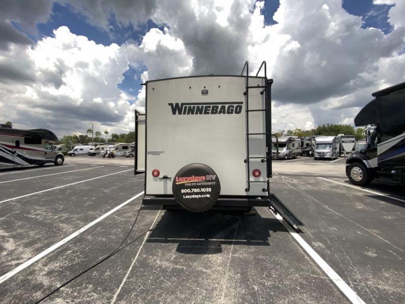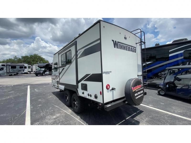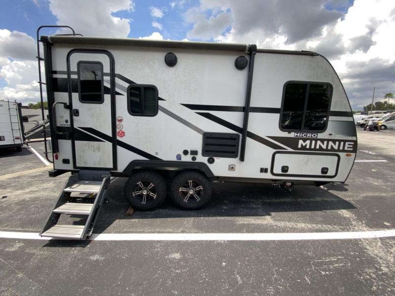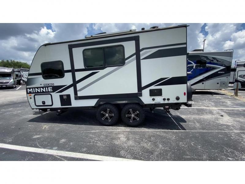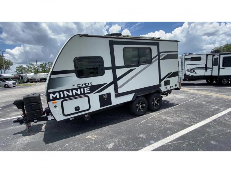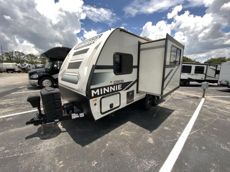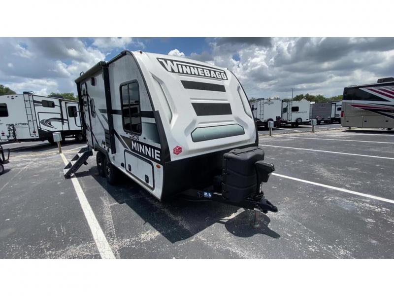Start out on your boundless journey in one of these Winnebago Industries Towables Micro Minnie travel trailers! Towing is made simple with the 7' width to keep your Micro Minnie in your rear-view mirror. They don't lack in features either although they are compact in size. The spacious galley including a sink, refrigerator, two burner cooktop, and even a microwave oven allows you to cook without compromise. You will not only enjoy the entertainment found indoors with an LED TV, a JBL premium sound system and Aura Cube high performance mechless media center, but outdoors you will also enjoy the JBL premium speakers and a power awning with LED lighting. Each model also comes with flexible exterior storage to make packing quick and easy. What are you waiting for, come choose your model today!
