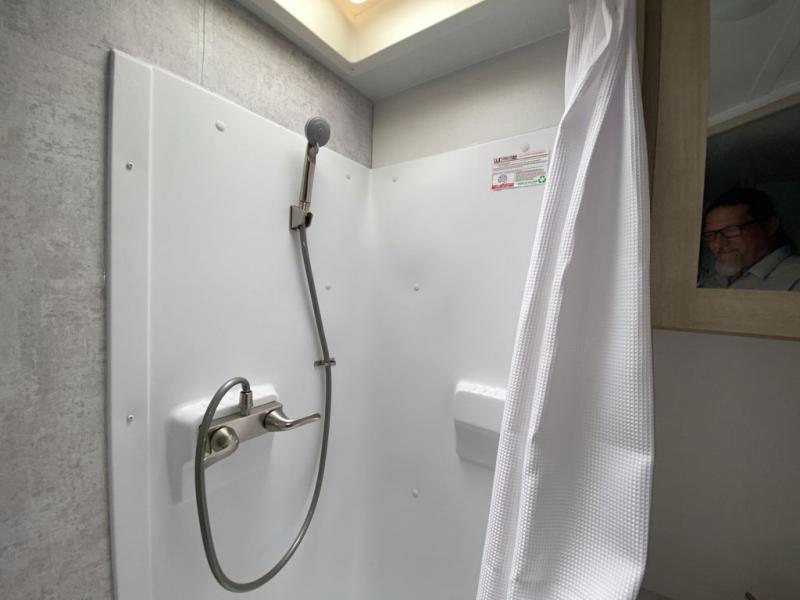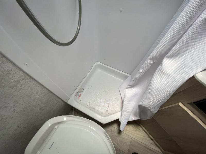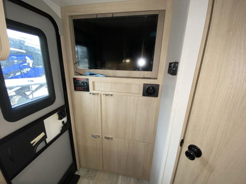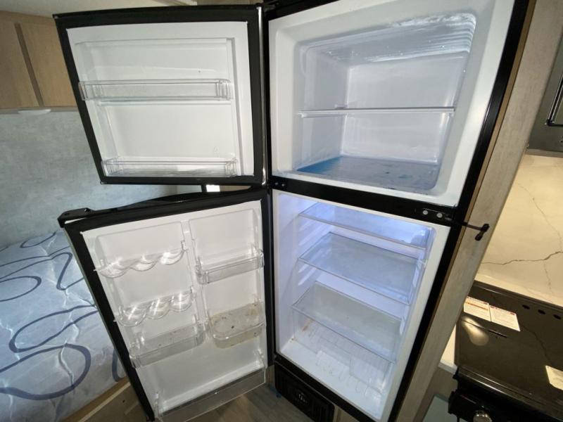 Don't pass your chance to camp comfortably with your spouse in this travel trailer! Up front there is a 60" x 74" RV queen bed with a divider curtain for privacy at night. Scramble up some eggs with the three burner cooktop and grab a cup of orange juice from the 10.3 cu. ft. refrigerator then head to the 44" x 72" booth dinette slide to enjoy your meal. The dinette can also transforms into an extra sleeping space if you want a tag along guest. Everyone can freshen up in the rear corner bathroom and watch their favorite movies on the LED TV!