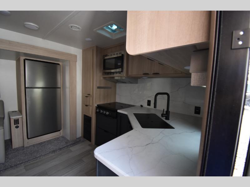 With any Minnie travel trailer by Winnebago, you'll be gaining an award-winning ticket to the good life! Lightweight towing is provided by the NXG engineered frame, and the Comfort Tech package will allow you to camp in all seasons with its enclosed underbelly, extreme weather radiant foil wrapping, and insulated heating ducts. Each model includes best-in-class exterior storage with up to 44 cu. ft. for all your camp gear, plus innovative interior storage for your belongings. You'll also find power stabilizer jacks outside, along with premium JBL speakers, an outdoor shower, a campside spray port, plus many more convenient features. The 200-watt solar panel will be perfect for some off-grid camping, and the Winnebago all-in-one control panel will allow you to control all of your units functions in one easy location. Head indoors to enjoy the full-overlay European style cabinetry and modern Cobalt decor, plus there are flexible furnishings, an open galley, and comfortable sleeping arrangements!