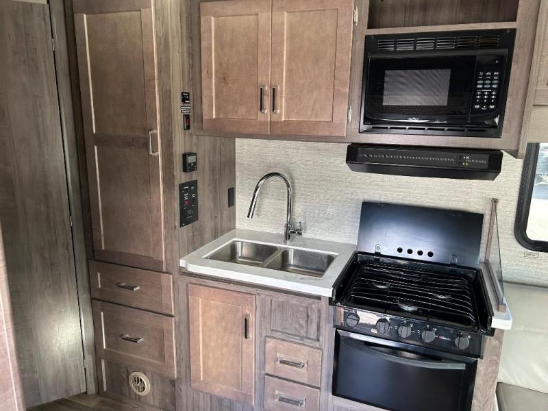 Choose your adventure with one of these Winnebago Minnie Winnie Class C gas motorhomes! The new 7.3L V8 premium engine and Ford E350 or E450 chassis makes light work of long hills. Their superior craftsmanship that was designed and built for you is shown through the Smart Driver Assist technology that includes adaptive cruise control, lane departure warning, forward collision warning, and more. With flexible seating/sleeping options and a full galley with Corian solid surface countertops, everyone will stay well rested and fed. You can store all of your traveling necessities between the overhead cabinets throughout the inside and the exterior lighted large trunk storage compartment for your outdoor gear. Come find the model perfect for you today!