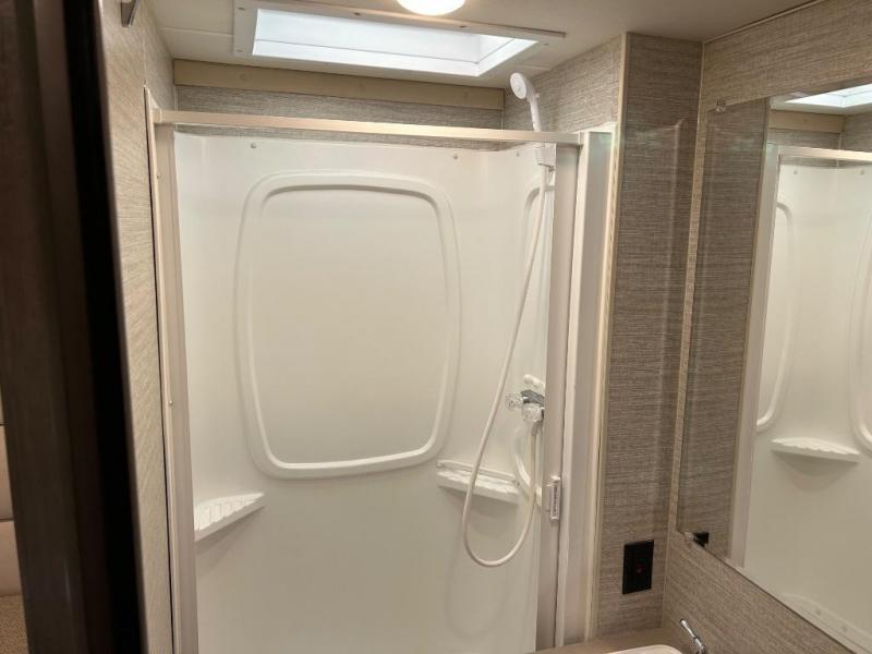 Pack your bags and load up into this motorhome for a fun vacation! You can lay your head down each night on the corner 54" x 80" bed with a TV location and a shirt closet to keep your clothes looking nice, plus it is conveniently right next to the rear corner bathroom which has a 23" x 34" shower with a skylight to freshen up in each morning. Next to the double stainless steel sink is a wardrobe for your storage needs and a three burner range with glass cover and oven to prepare your best home cooked meals. Eat your meals and play games at the 42" x 69" booth dinette then relax on the 40" x 67" sofa bed which transforms into an extra sleeping space. The 57" x 95" bunk over cab with TV location also offers a comfortable sleeping space or you can use it for storage!