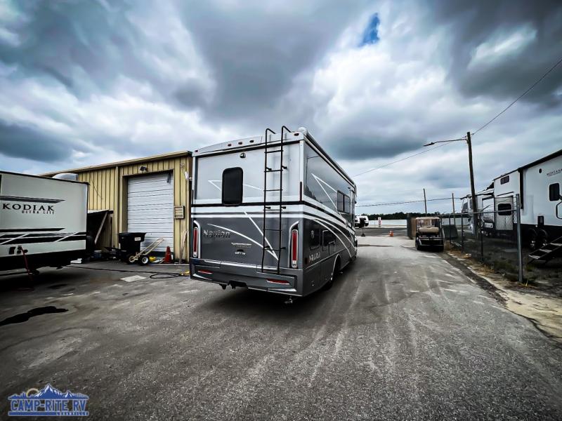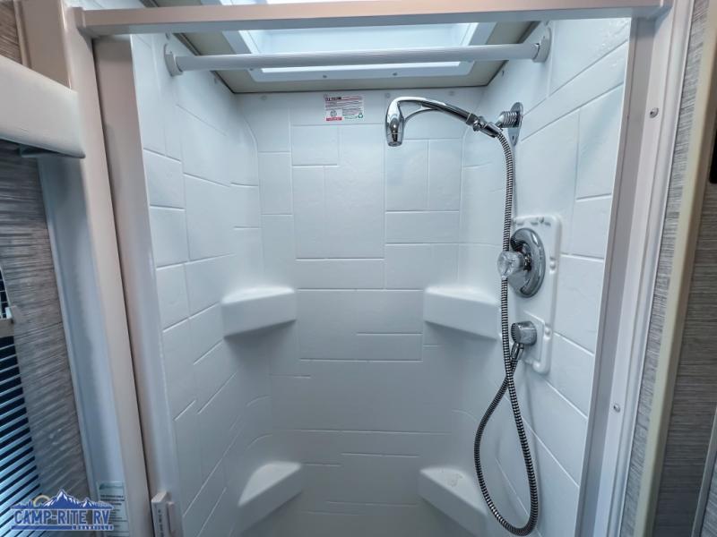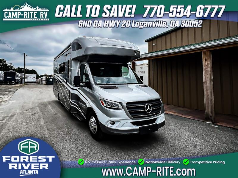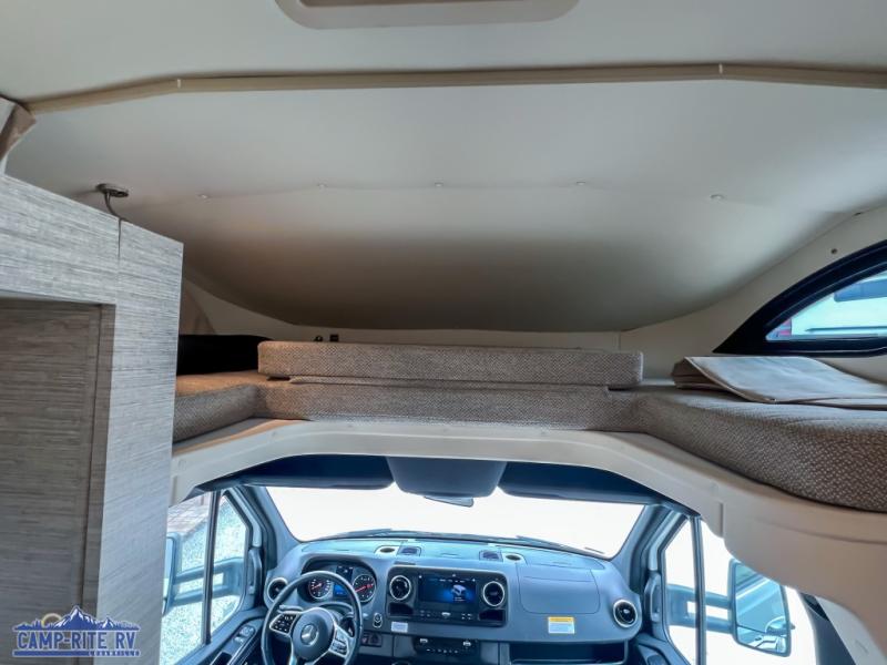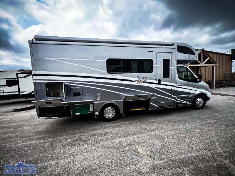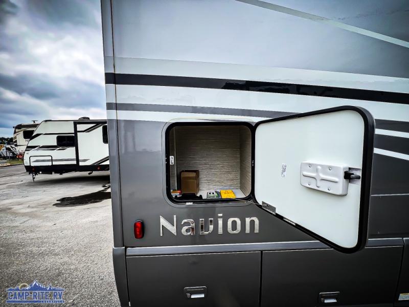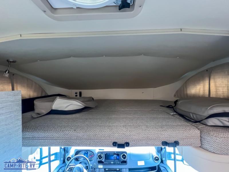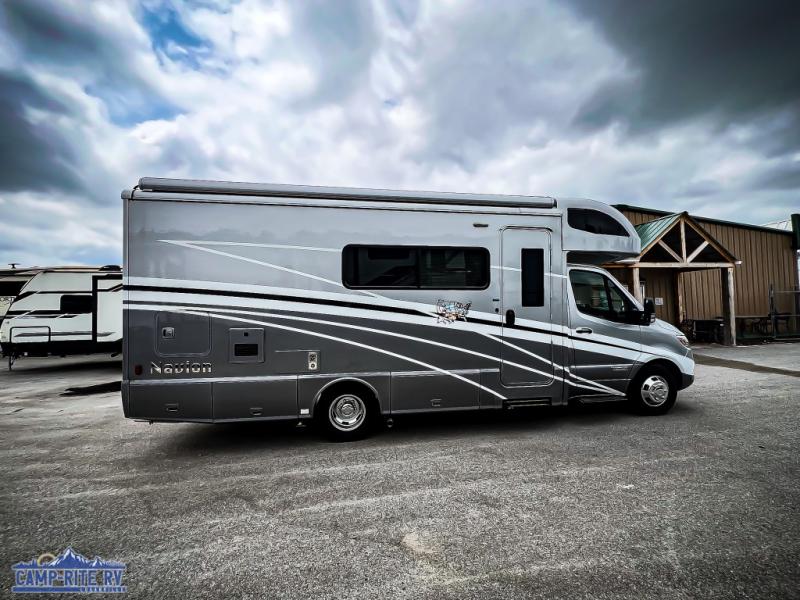 With the Winnebago Navion Class C diesel motorhome, campsite setup is made easier with a powered patio awning with LED lights and Bluetooth control that you can control with a smartphone app, a slide out that is easily moved outward with a push of a button, and your sleeping accommodations are flexible with your activities. The Mercedes-Benz Sprinter chassis, the turbo-diesel engine, the Adaptive ESP technology and the hydraulic brakes with ABS, are a few reasons you will love driving this coach anywhere, plus all the cab conveniences. The interior offers laminate countertops and vinyl flooring throughout for easy care, cabinets with accent lighting, toe kick lighting to help when your hands are full, and charging stations for your electronics. Choose a quieter, more comfortable ride with the SuperShell sleeper deck, and start making plans for years of traveling in your own Navion!