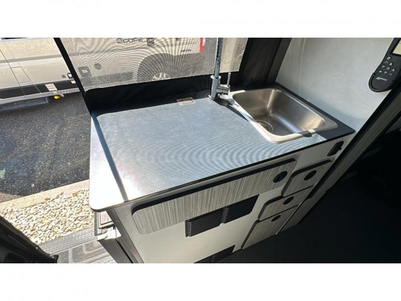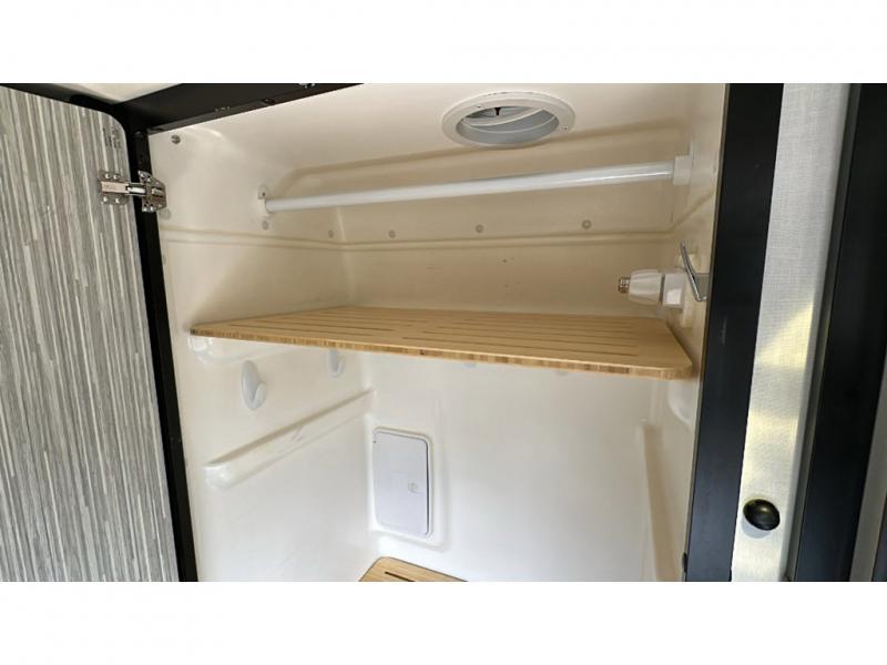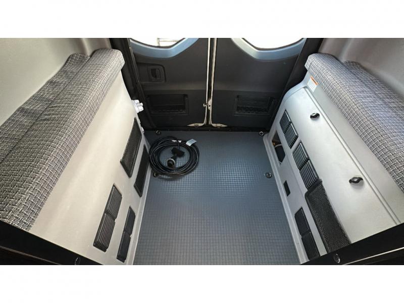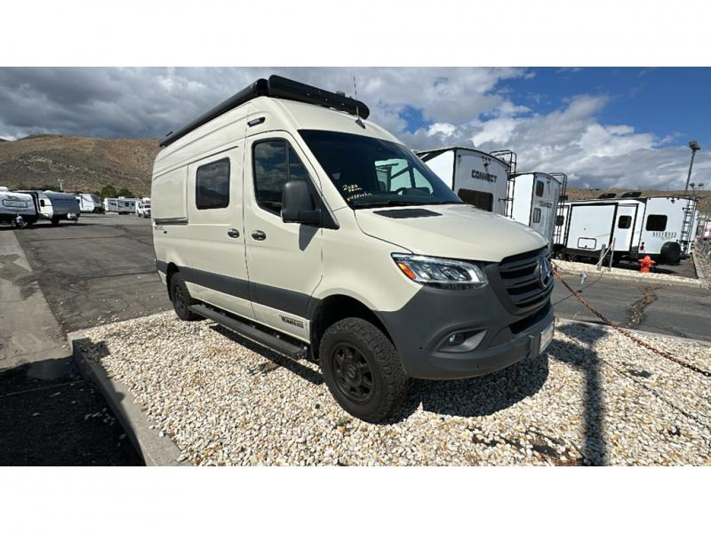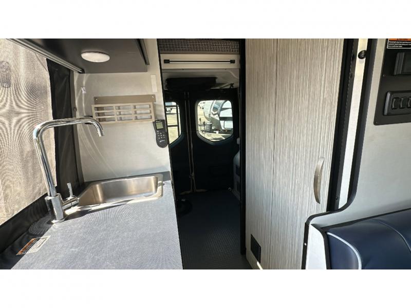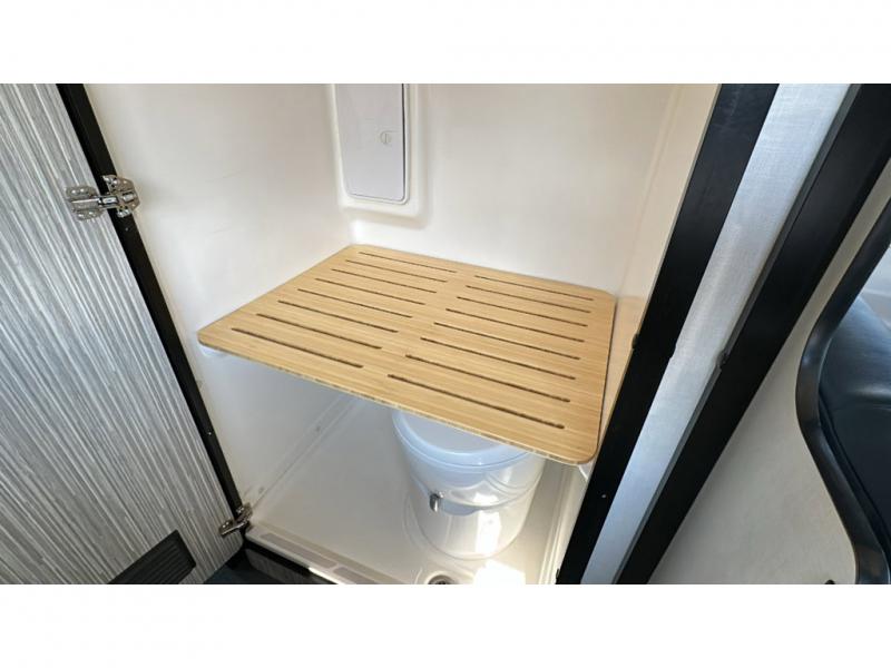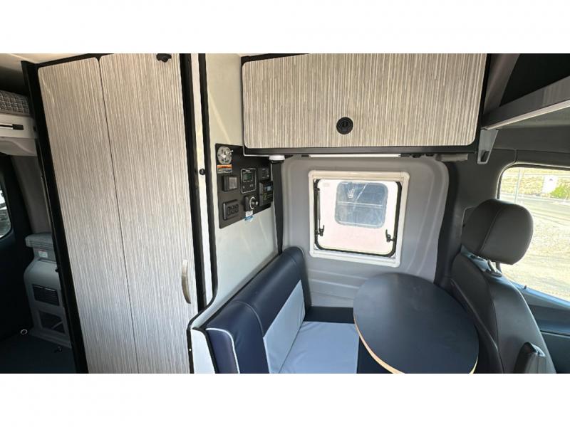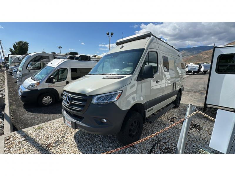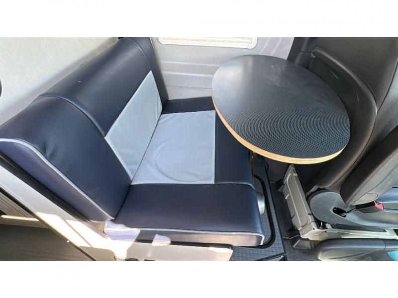 Looking for adventure yet not sure which road you will take? This camper van offers the outdoor enthusiast a way to venture the unknown with a 4-wheel drive motorhome. Once at your destination, you can easily set up the interior with the power lift bed in the rear, or relax under the power awning with LED lighting and Bluetooth control. There is even a fold-down outside table to dine outdoors if you want. You will find storage throughout including in the gear garage below the bed where you can store your hiking sticks and backpacks. The cook will have a portable single burner induction range top, a stainless steel sink, and a removable counter extension for more prep space. There is seating on the driver and passengers seats that swivel to face the bench seat with a removable pedestal table, and there is a wet bath to keep everyone refreshed.