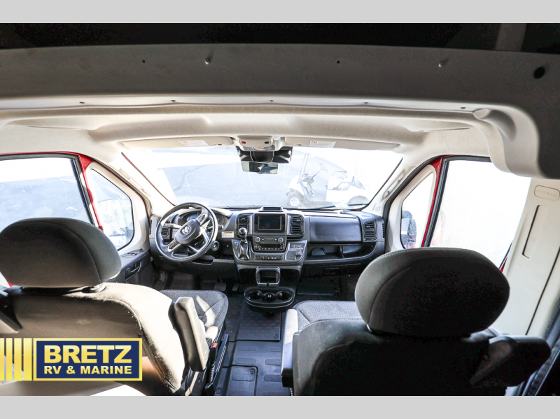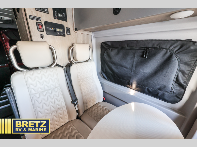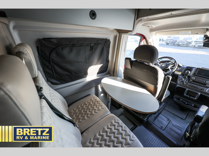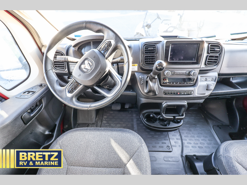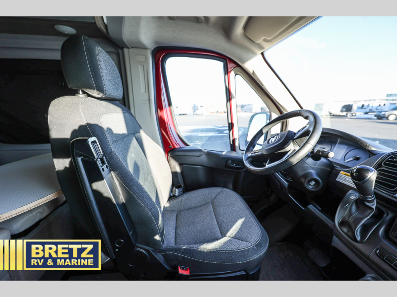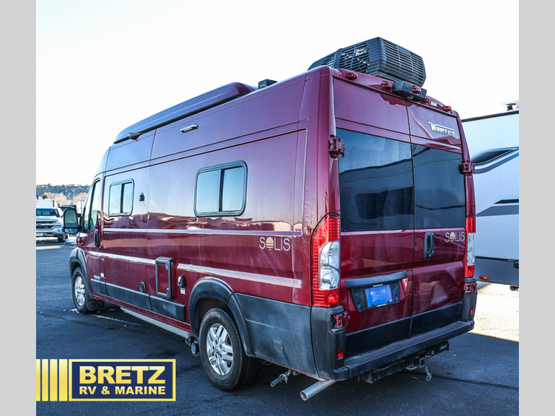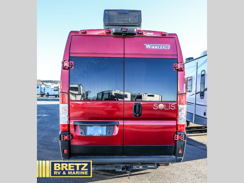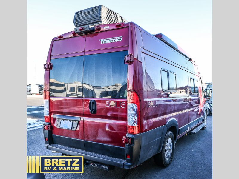 Each Solis Class B gas motorhome by Winnebago sits upon a fuel-efficient Ram ProMaster chassis with a 3.6L V6 engine to power your adventures. You will love the cab conveniences that make each trip enjoyable, like the digital review mirror, the radio/review monitor system touchscreen, and the crosswind assist to keep you steady on the road. Some of the hassle-free amenities you will appreciate are the exterior wash station, the Eco-Hot water system, and the water center control panel located inside the right rear door. Head indoors to find heavy-duty vinyl flooring throughout, a laminate countertop and a stainless steel sink in the galley, plus tinted coach windows for added privacy. The Solis also features off-grid capabilities with its two deep-cycle Group 31 batteries and 220-watt flexible surface solar panel with a controller. Adventures awaits in the Solis Class B gas motorhome!