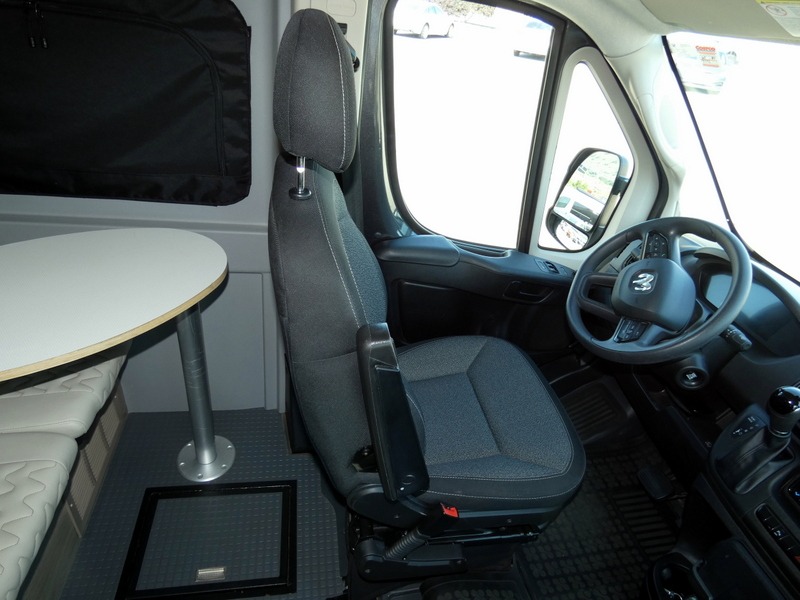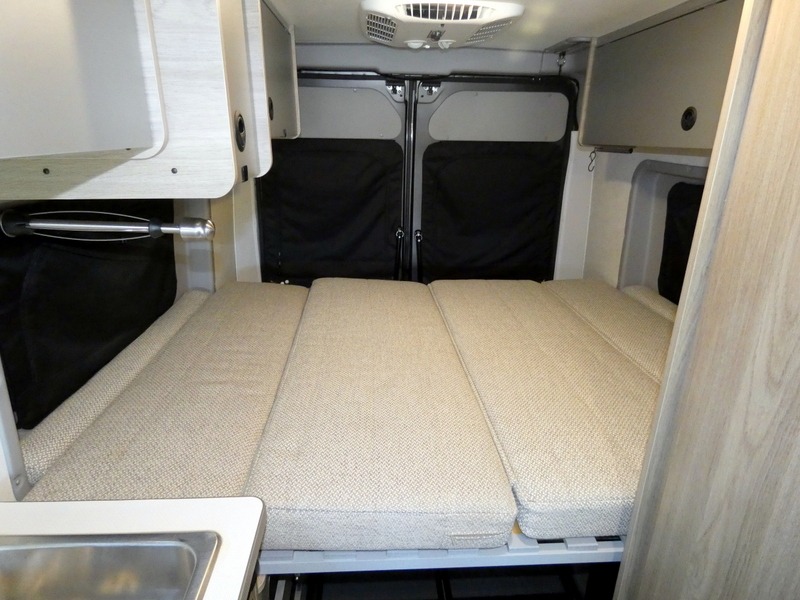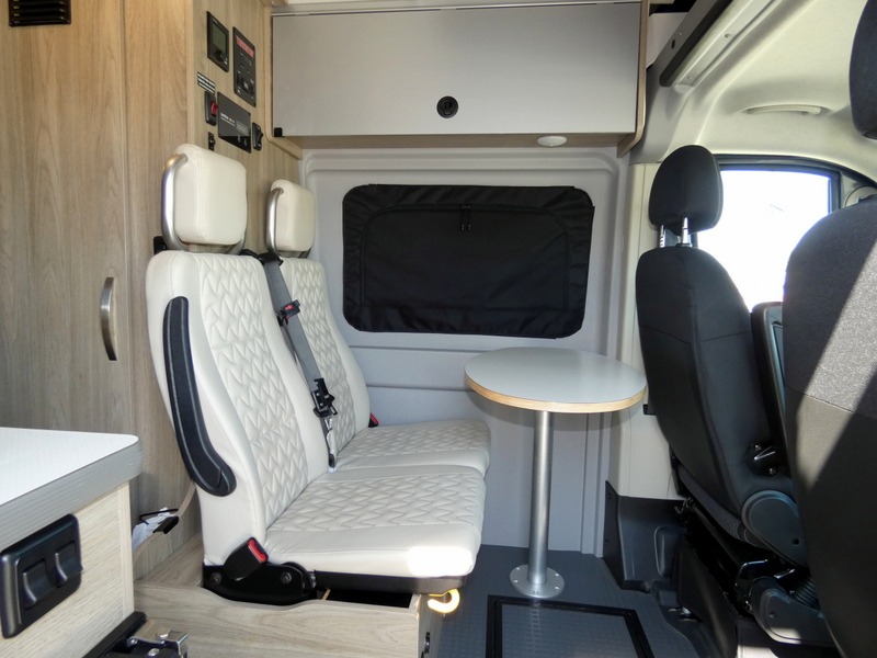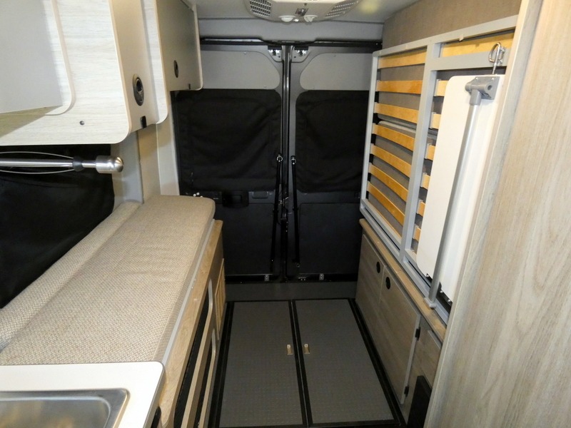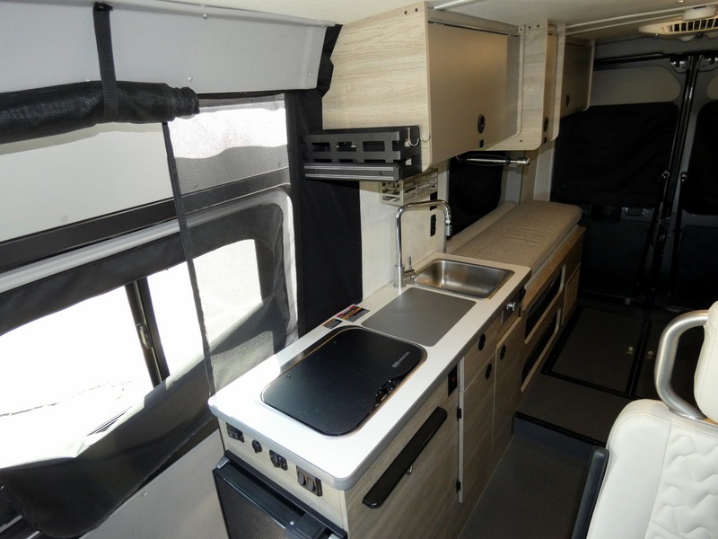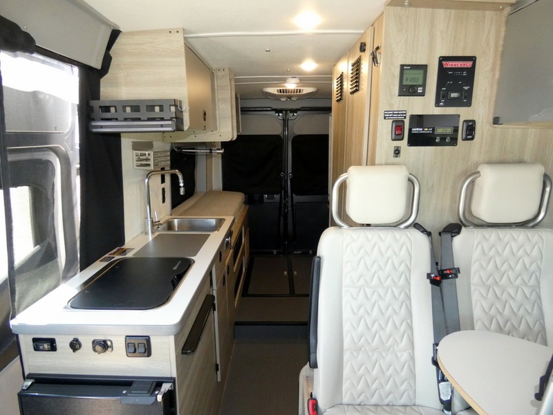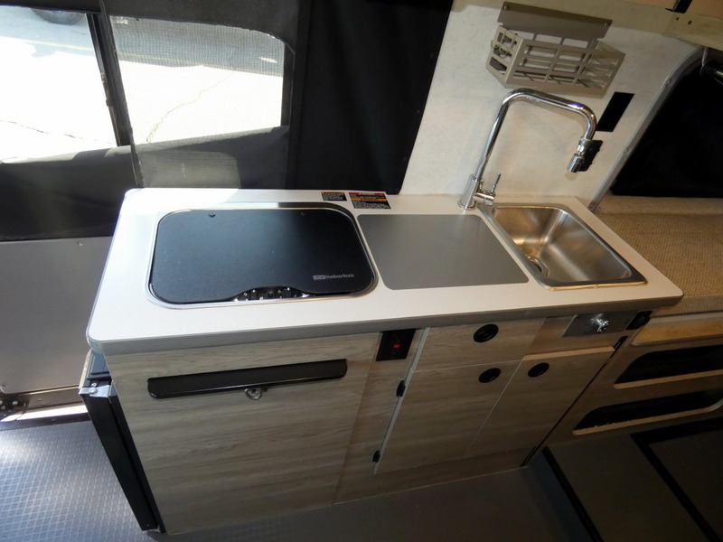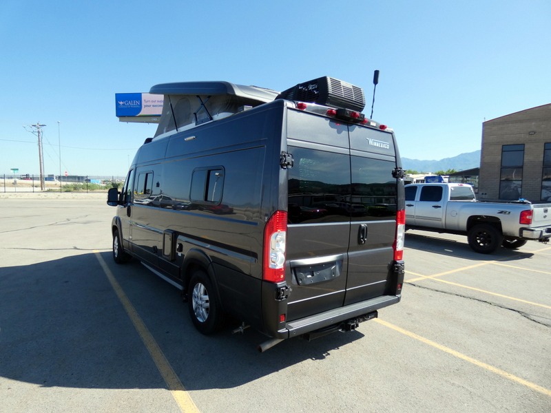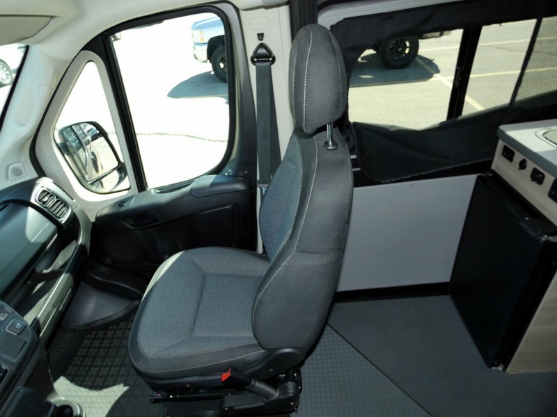 This camper van with an L-track storage system is perfect for those needing more storage space for their hiking and biking gear. You can stay powered up with the Cummins Onan QG 2800i gas generator, and there is a Coleman Mach 10NDQ A/C with directional vents that will allow you to come inside to cool off after a trail ride. A Murphy+ bed comes standard, and any guests that tag along can sleep in the pop-top sleeping area! You'll find the wet bath to come in handy when you want to clean up, and the dinette seating with a removable pedestal table will provide a place to enjoy your dinner at.