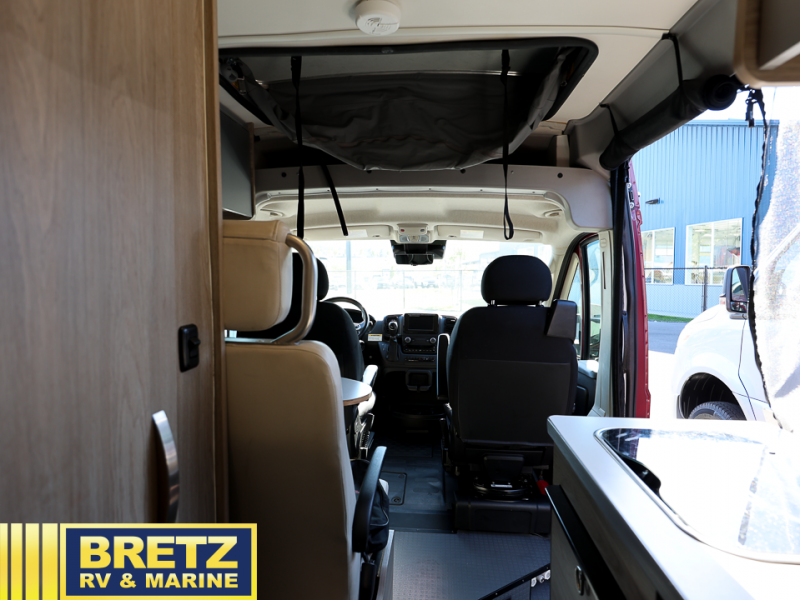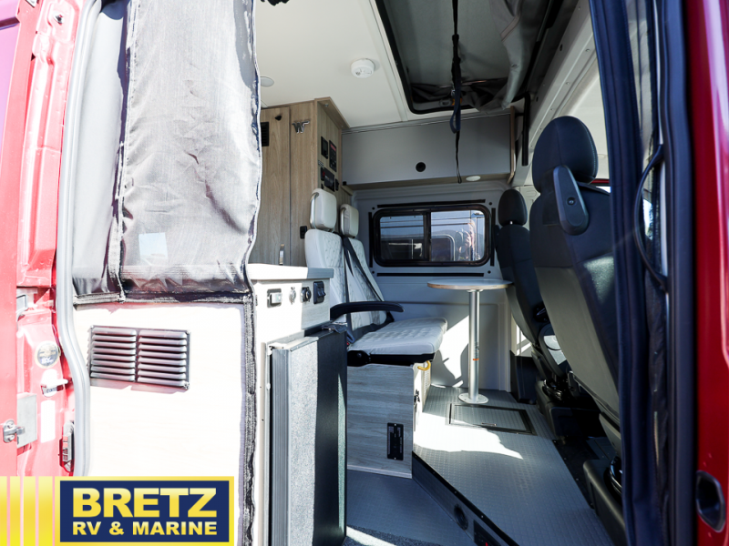 This camper van with an L-track storage system is perfect for those needing more storage space for their hiking and biking gear. You can stay powered up with the Cummins Onan QG 2800i gas generator, and there is a Coleman Mach 10NDQ A/C with directional vents that will allow you to come inside to cool off after a trail ride. A Murphy+ bed comes standard, or you can choose the optional sofa/bed, and any guests that tag along can sleep in the pop-top sleeping area! You'll find the wet bath to come in handy when you want to clean up, and the dinette seating with a removable pedestal table will provide a place to enjoy your dinner at.