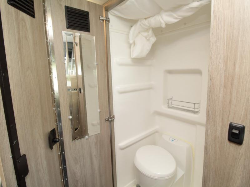 Inside, you’ll find heavy-duty vinyl flooring, a stainless steel sink, and laminate countertops for easy cleanup. Tinted windows provide privacy, while the Eco-Hot water system ensures hot showers on demand. Outside, the wash station makes rinsing off gear hassle-free.
