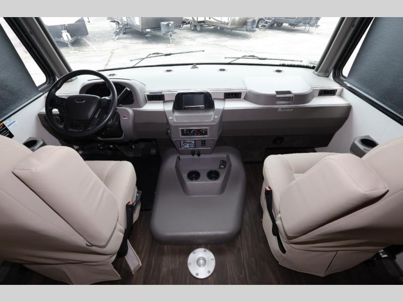 With any Sunstar Class A gas motorhome by Winnebago you begin with a Ford F53 chassis and an V8 engine that provides ample towing power, a trailer hitch with 5,000 lb. drawbar, premium high-gloss sidewall skin, plus automatic hydraulic leveling jacks for easy setup. Also included are two deep-cycle Marine/RV Group 31 batteries, a 1,000-watt inverter, and a solar panel/battery charger prep kit. The interior provides features such as the Winnebago Control™ systems monitor with 7" touchscreen monitor and available app, residential vinyl flooring, and a large panoramic windshield to enjoy while relaxing inside and driving down the road. Choose your favorite Sunstar and see why these coaches offer value, comfort and user-friendly features you don't want to travel without!