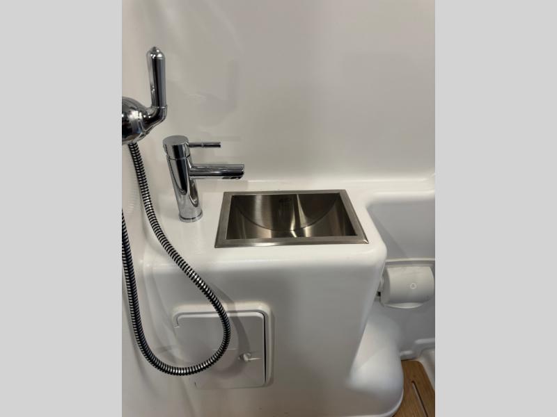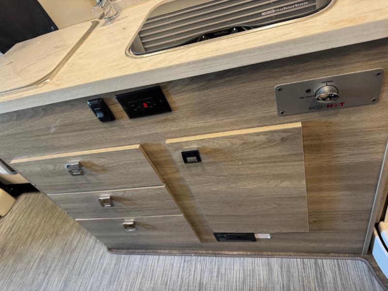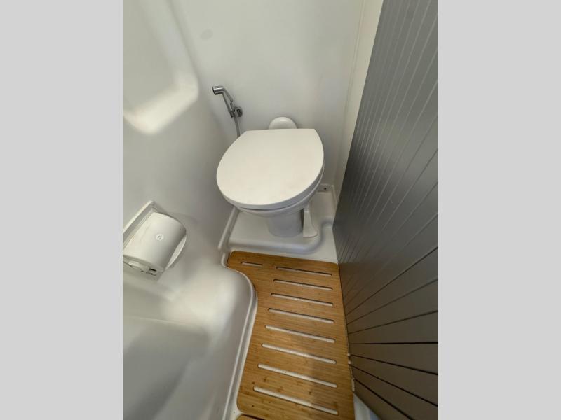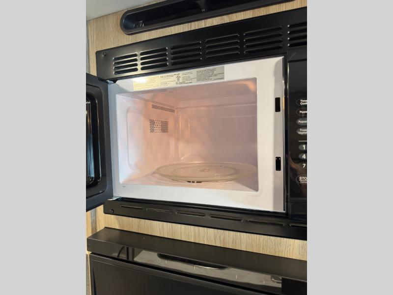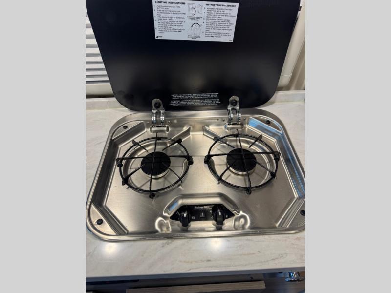 Experience the comforts of home while traveling on the road with this motorhome! You can roll out of the corner 49" x 77" bed then easily exit through the rear double doors to catch the beautiful sunrise. Freshen up in the 28" x 51" wet bath with a sliding door then head to the kitchen and grab some eggs from the two door 6.0 cu. ft. compressor-driven refrigerator/freezer then fry them on the two burner range LP cooktop with glass cover and heat shield. The flip-up countertop extension will make your meal prepping easier and the cold water filtration system ensures you have clean water where ever you go. The two cab seats in the living area have an adjustable/removable table and mount to enjoy your meals at, and next to the passenger captain chair is a pedestal with pop-up outlets and mount for the adjustable/removable table!