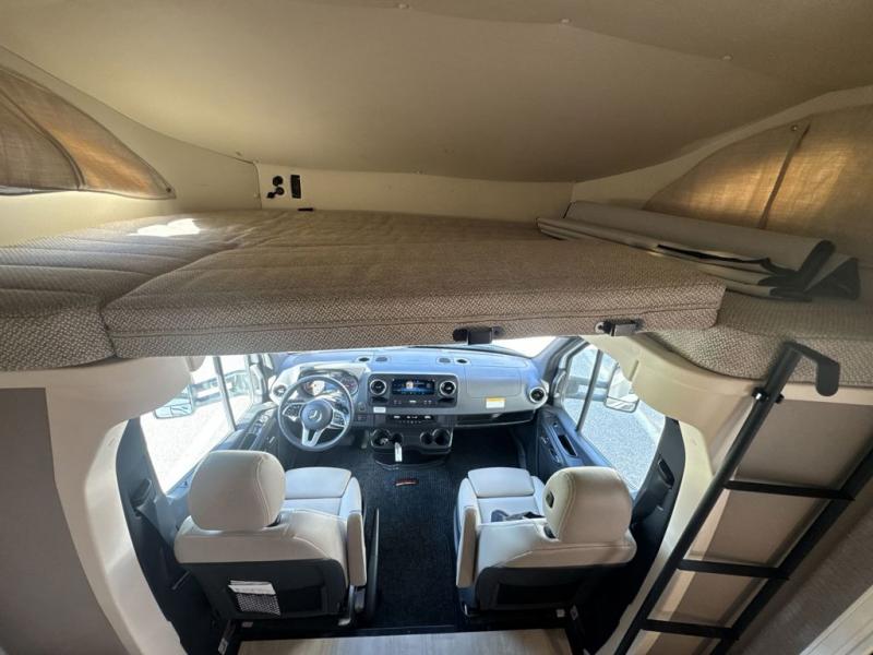 With each View Class C diesel motorhome by Winnebago, you can extend your trips off grid with the industry-leading holding tanks, the two 100W solar panels, the two deep-cycle Group 31 RV batteries, the 2,000W inverter, plus the 3,600W Cummins Onan MicroQuiet LP generator. The insulated sleeper deck is built with premium thermal and acoustic insulation allowing the SuperShell sleeper deck to be more comfortable and relaxing during any season. The View is built on a Mercedes-Benz Sprinter chassis with advanced safety features giving you peace of mind, and the MBUX touchscreen infotainment system has intelligent voice control, navigation, a Wi-Fi hotspot, and more! The interior offers luxury space and simple solutions for storage, plus it also has vinyl flooring and laminate countertops for easy clean-up.