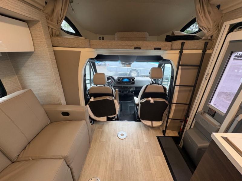 With each View Class C diesel motorhome by Winnebago, you can extend your trips off grid with the industry-leading holding tanks, the two 100W solar panels, the two deep-cycle Group 31 RV batteries, the 2,000W inverter, plus the 3,600W Cummins Onan MicroQuiet LP generator. The insulated sleeper deck is built with premium thermal and acoustic insulation allowing the SuperShell sleeper deck to be more comfortable and relaxing during any season. The View is built on a Mercedes-Benz Sprinter chassis with advanced safety features giving you peace of mind, and the MBUX touchscreen infotainment system has intelligent voice control, navigation, a Wi-Fi hotspot, and more! The interior offers luxury space and simple solutions for storage, plus it also has vinyl flooring and laminate countertops for easy clean-up.