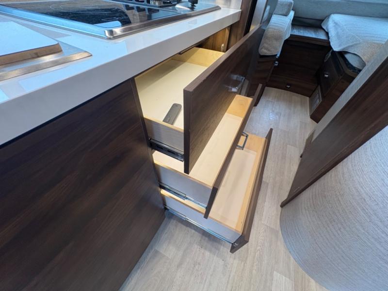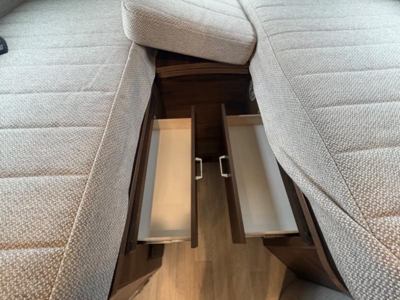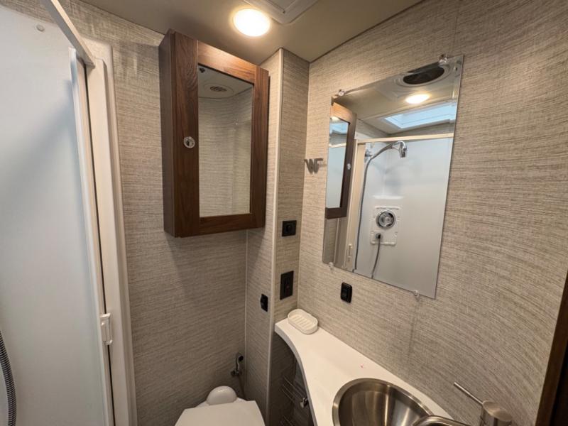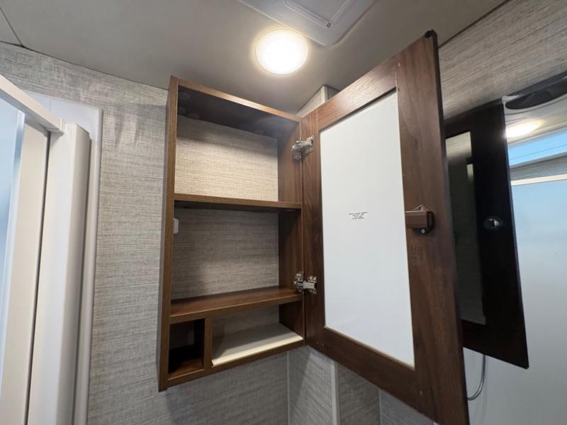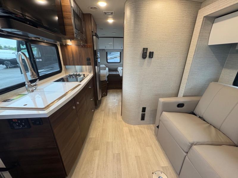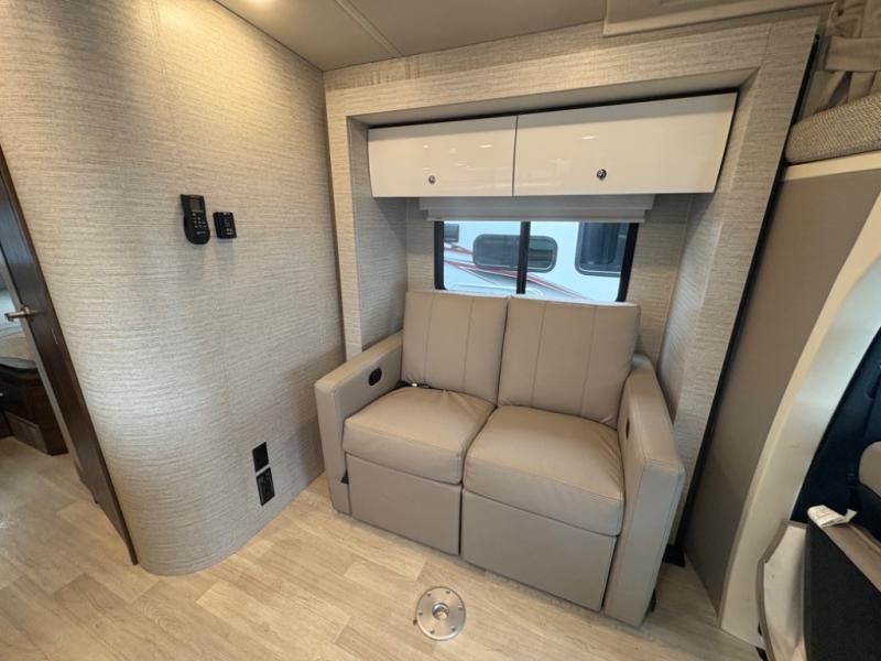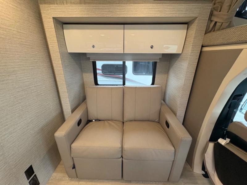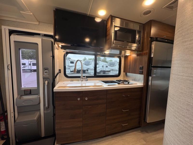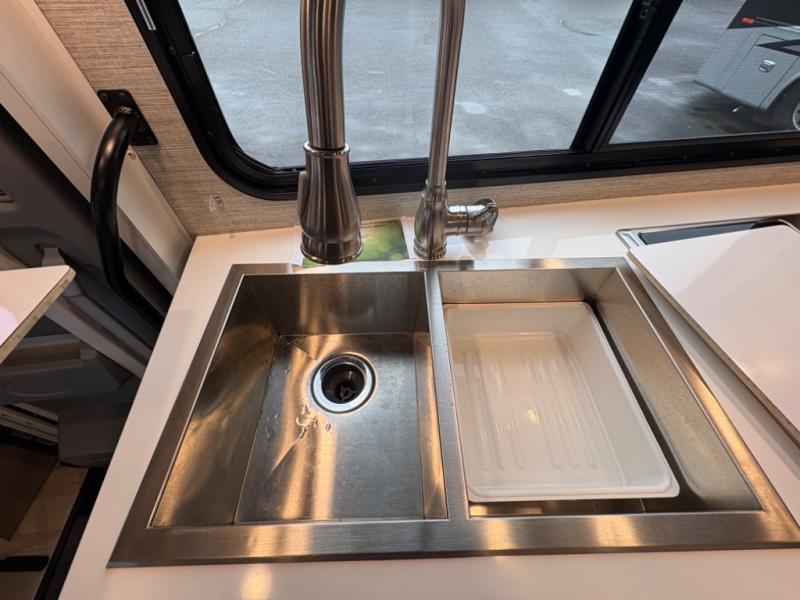This versatile View Class C diesel motorhome gives you the ability to sleep in twin beds each with a wardrobe at the foot of the bed, or you might like to use the Flex Bed system to convert them into one 74" x 87" king bed. Other sleeping spaces include the bunk above the cab that the kids will love, and the TrueComfort+ sofa slide out which includes a table for dining, playing games, or maybe getting a little work done. You might even decide to add the optional seating with table instead if you don't think you will need the extra sleeping space. The cook will have all the necessary appliances to make warm meals including a convection microwave oven and an LP/induction cooktop, and the curved cabinets and lighted soft-close galley drawers create an upscale cooking experience.