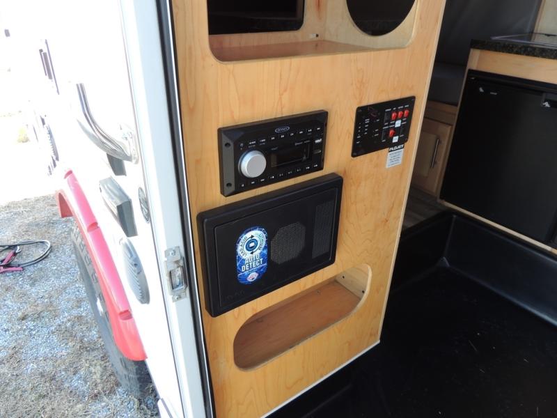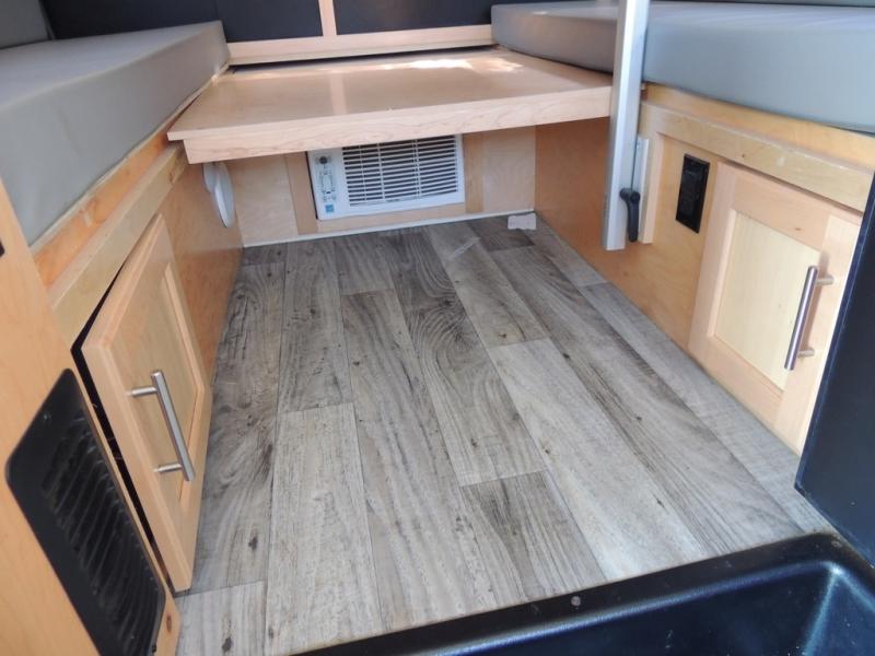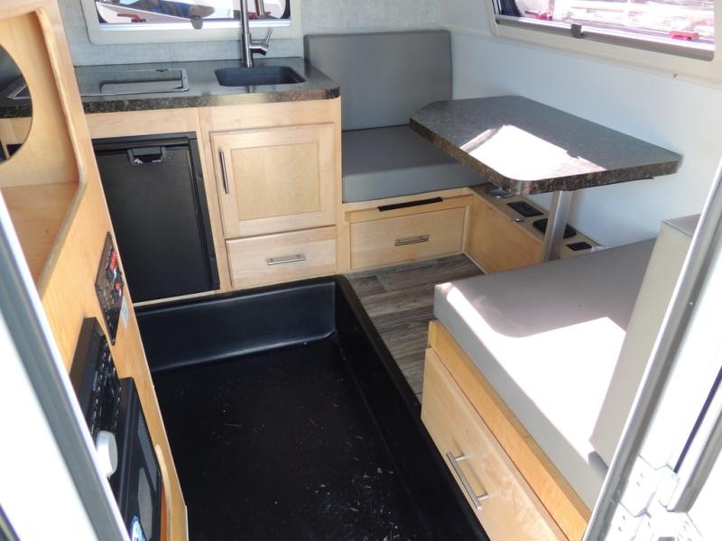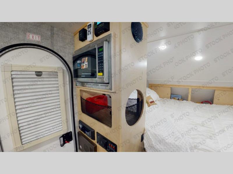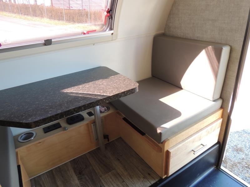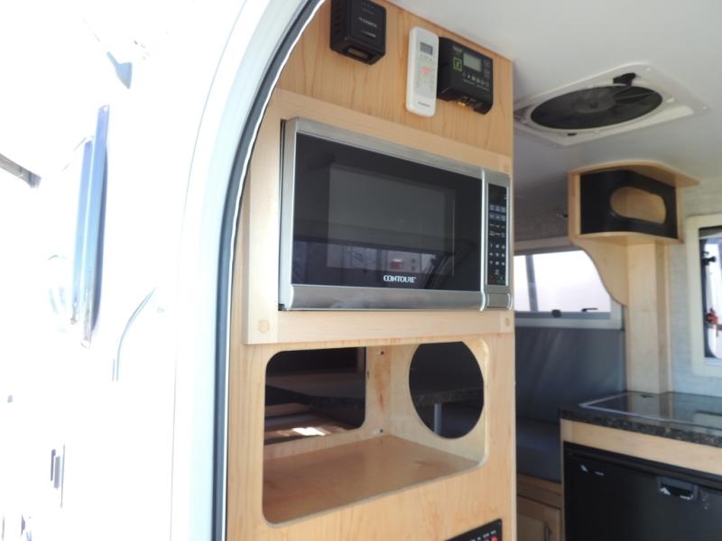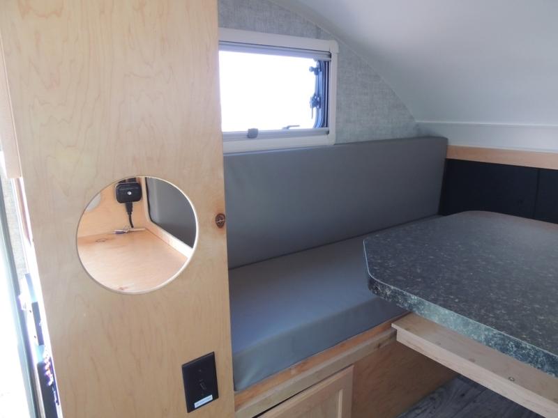 This Little Guy teardrop trailer can store away in your garage without any hesitation! With a dry weight starting at 1,860 lbs., you'll find no problem towing this trailer with your SUV or crossover, and the cozy yet spacious interior offers you 5' 9" of standing room. This trailer can sleep three adults, but it can also seat six adults for a night of fun. The floor-to-ceiling storage cabinet is beneficial for storing any items you want to bring along, and the well-equipped kitchen offers you a Contoure stainless steel microwave, a two-burner glass-top stove, and a 1.9-cubic foot Dometic absorption refrigerator.