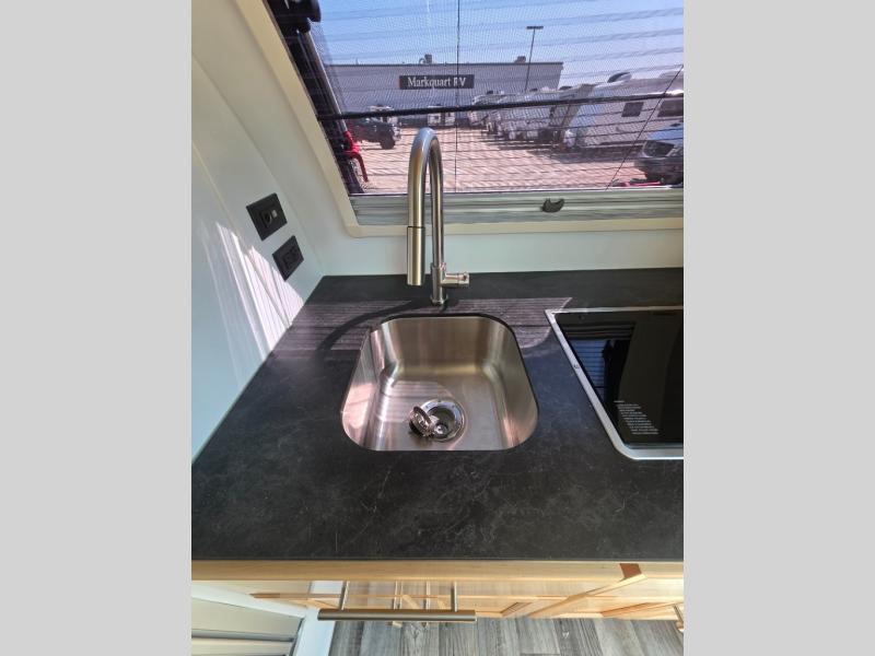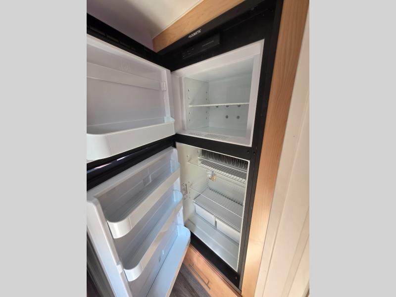 This Little Guy teardrop trailer is designed to deliver the maximum amount of fun in a compact package! It features the same layout as the standard Mini MAX model, but includes a larger 6 cu. ft. refrigerator, a pass-through storage, and a shower with a sink! This trailer can easily be towed by a small SUV or well-equipped crossover, and it is a tough trailer that offers 15" premium tires, Azdel composite sidewalls, insulated dual-pane windows, an exterior entertainment center, and a friction-hinge entry door. Despite its compact size, this trailer still offers you a spacious interior living space with its 6' 1" interior height. You can even tack on an optional rear vertical stargazer window which allows you to bring more of the outdoors inside.