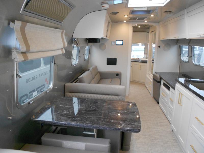 When it comes to full-time luxury living on the road, none other will do than a Classic travel trailer by Airstream. The sophisticated interior includes Ultraleather seating, a luxurious bathroom, handcrafted hardwood cabinetry, and a top-of-the-line kitchen with premium appliances. You will appreciate the rear-view monitoring system to easily park your trailer at the campsite, plus there are four powered heavy duty stabilizer jacks for easy set up. After you've unpacked, set up the powered ZipDee patio awning and adjust the LED dimmable awning light as you enjoy a cold drink. The Classic travel trailers also include QuiteStream climate control that cools your unit quietly and evenly for a truly comfortable environment!