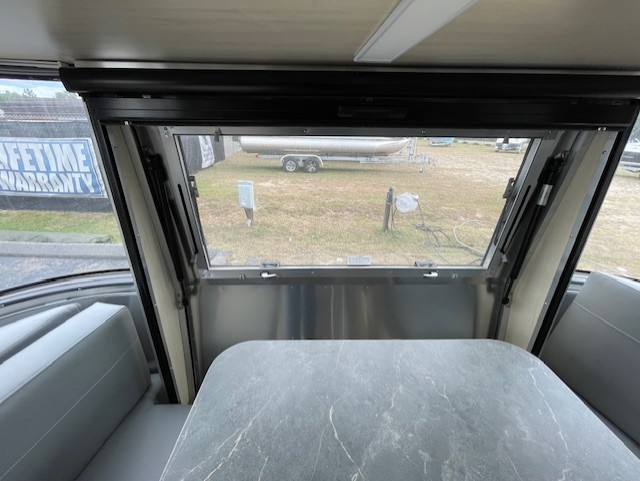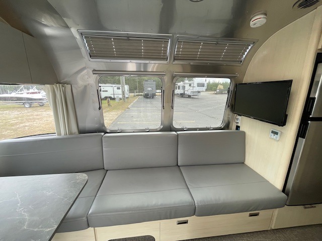 The family-friendly and popular Flying Cloud travel trailers by Airstream are built for ease of towing with a rear-view camera to make reversing and parking easier and stainless steel front stone guards to protect the lower segments from road debris. The iconic Airstream design is created outside and inside by the semi-monocoque aluminum superstructure, the temperature reducing one-piece white aluminum roof, the panoramic front windows, and the stylish aluminum wheels. The interior will have you feeling right at home with handcrafted cabinetry, plenty of storage and counter space, sleek roller blinds and blackout curtains, plus residential style faucets!