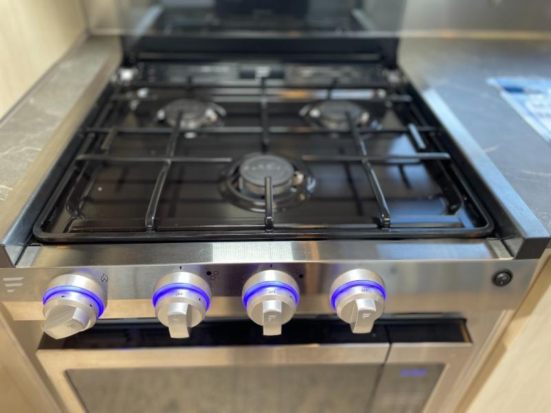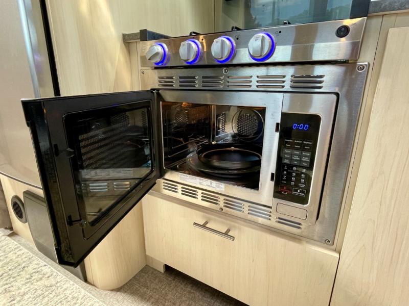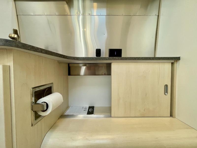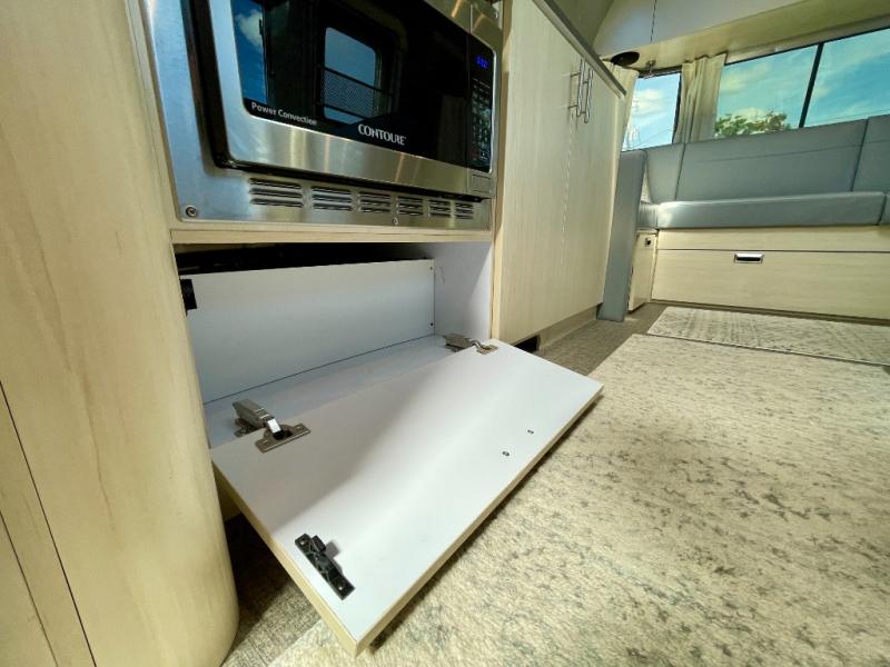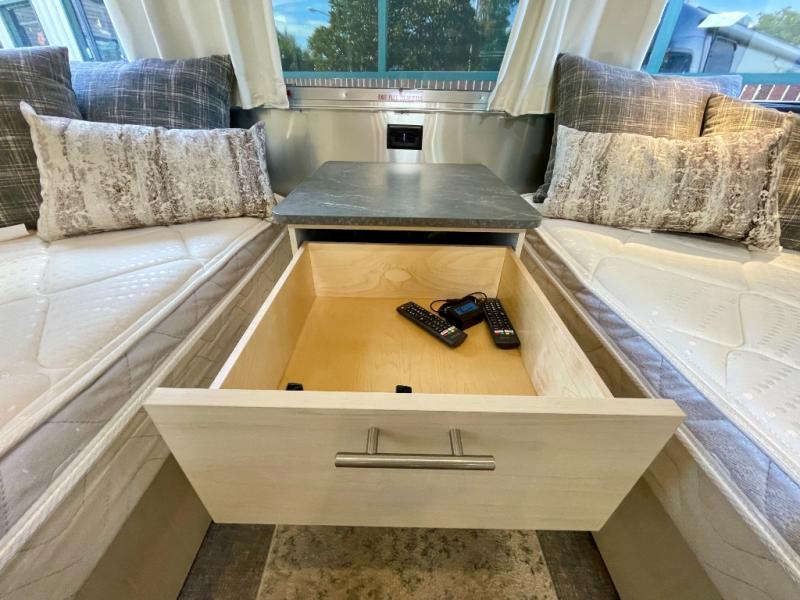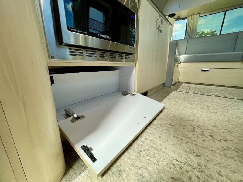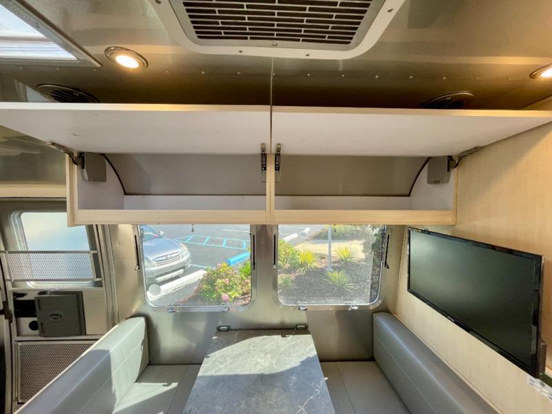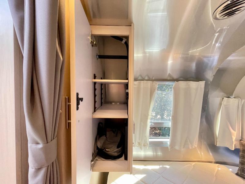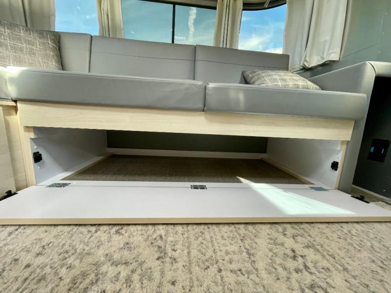 With each Flying Cloud travel trailer by Airstream, there are two axles, and each is built for ease of towing, plus there is a rear-view camera to make reversing and parking easier, and stainless steel front stone guards to protect the lower segments from road debris. The iconic Airstream design is created outside and inside by the semi-monocoque aluminum superstructure, the temperature reducing one-piece white aluminum roof, the panoramic front windows, and the stylish aluminum wheels. The interior will have you feeling right at home with handcrafted cabinetry, plenty of storage and counter space, sleek roller blinds and blackout curtains, plus residential style faucets!