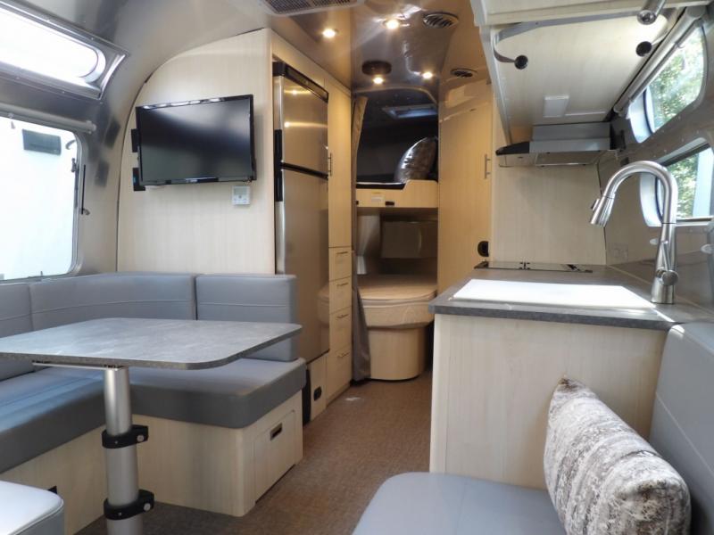 The family-friendly and popular Flying Cloud travel trailers by Airstream are built for ease of towing with a rear-view camera to make reversing and parking easier and stainless steel front stone guards to protect the lower segments from road debris. The iconic Airstream design is created outside and inside by the semi-monocoque aluminum superstructure, the temperature reducing one-piece white aluminum roof, the panoramic front windows, and the stylish aluminum wheels. The interior will have you feeling right at home with handcrafted cabinetry, plenty of storage and counter space, sleek roller blinds and blackout curtains, plus residential style faucets!