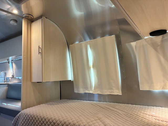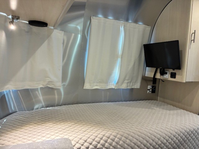 The family-friendly and popular Flying Cloud travel trailers by Airstream are built for ease of towing with a rear-view camera to make reversing and parking easier and stainless steel front stone guards to protect the lower segments from road debris. The iconic Airstream design is created outside and inside by the semi-monocoque aluminum superstructure, the temperature reducing one-piece white aluminum roof, the panoramic front windows, and the stylish aluminum wheels. The interior will have you feeling right at home with handcrafted cabinetry, plenty of storage and counter space, sleek roller blinds and blackout curtains, plus residential style faucets!