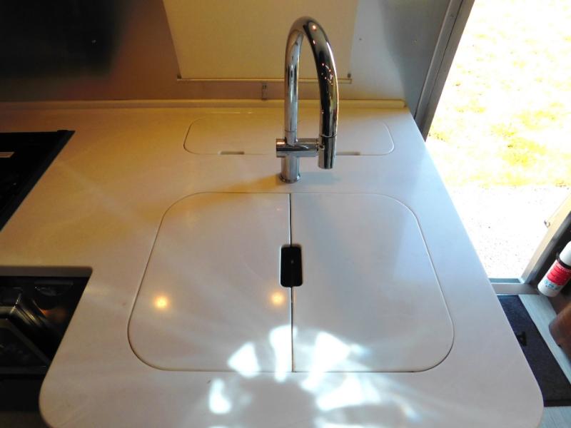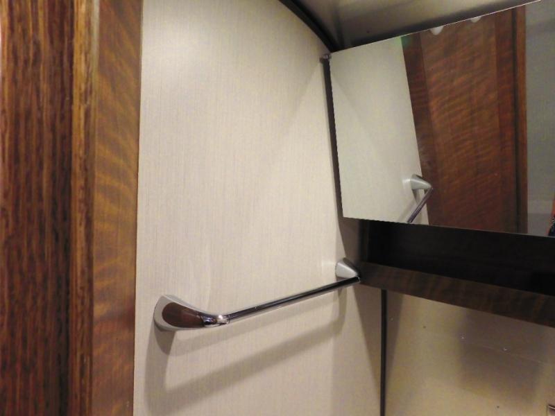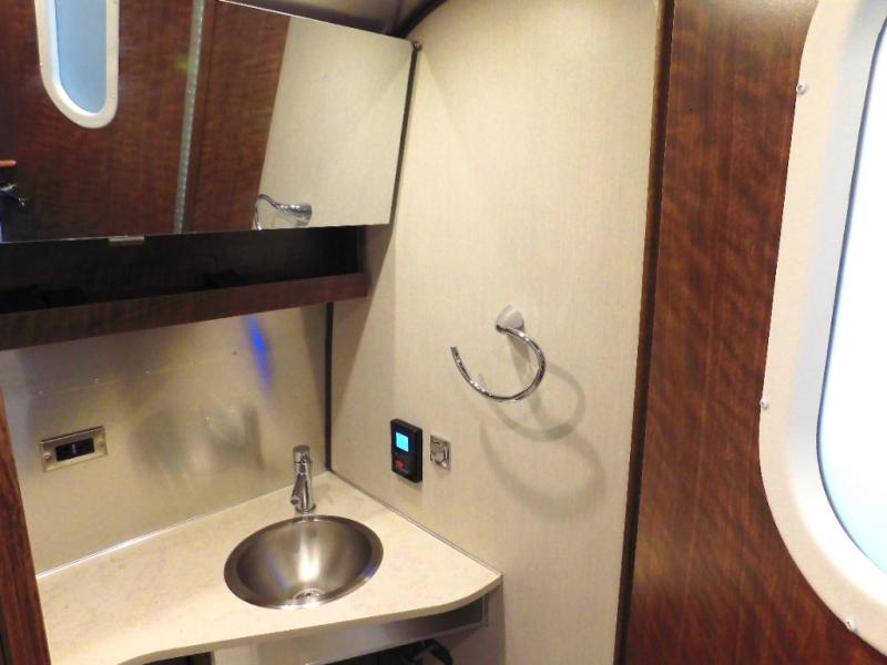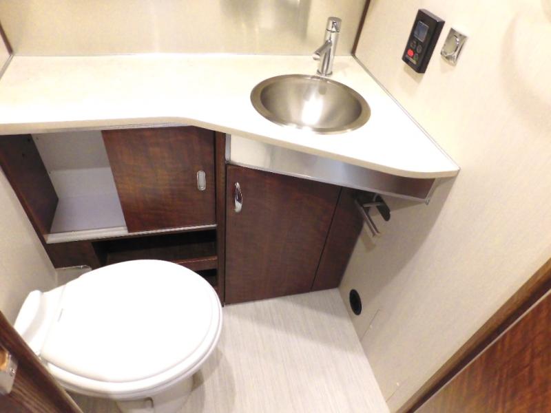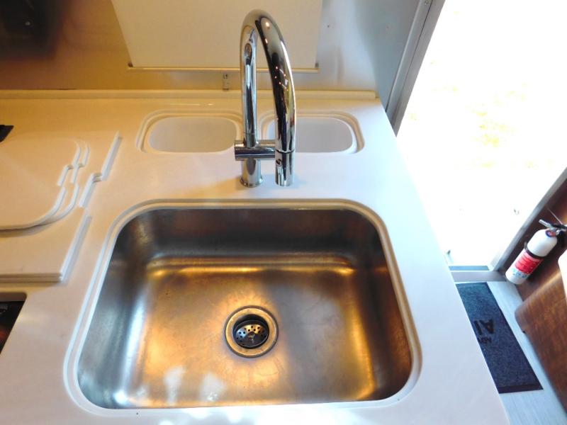 Enjoy a home away from home with this travel trailer! The L-shaped lounge provides a comfortable place to enjoy a meal, play a card game, and even transform into an extra sleeping space for a guest or two smaller guests. The ultra-modern kitchen has a stainless steel three burner cooktop, a Baraldi vent, a 6.8 cu. ft. 12V refrigerator, and a deep stainless steel Moen sink to make clean up easier. The bright white DuPont Corian countertops help light bounce off of the aluminum walls making for a brighter atmosphere and they also have built-in multifunctional storage bins that are flush with the surface behind the sink. Up front there is a queen bed with an AdaptaFlex memory foam mattress for you to enjoy a good night's rest or you can chose the optional twin beds, depending on your needs. The separated bathroom allows one person to freshen up in the shower with a seat while another uses the private toilet and vanity!