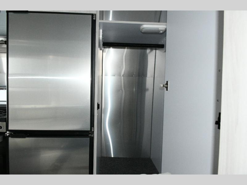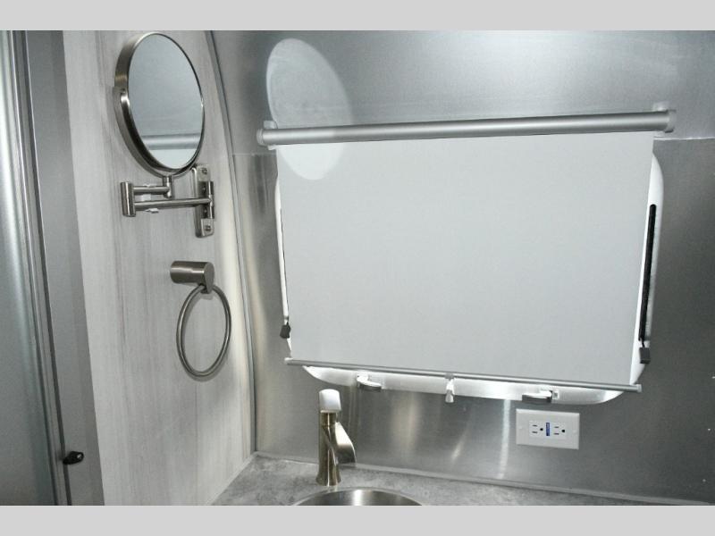 With a rear bathroom, U-shaped dinette, and ample storage, this Airstream combines practical features with timeless design, perfect for solo travelers, couples, or small families seeking quality and convenience.