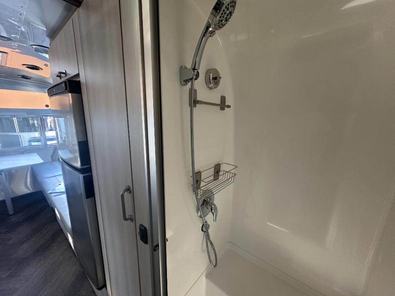 Every time you step foot into the Airstream International travel trailer, you will feel as if you are breathing in a breath of fresh air! The fresh coastal décor was inspired by the waterfront, and the stylish interior delivers a relaxing environment and comfortable luxury. The panoramic windows increase the amount of natural sunlight that streams through to the interior, but they also have blackout shades that you can close whenever you need a darkened room. The beautiful handcrafted Italian Lite-Ply laminated cabinetry is an attractive base for the overhead storage lockers that have sliding doors and LED lighting. The dimmable interior LED lighting will create the perfect amount of illumination for you as you spend time indoors. The exterior has excellent features as well with its enclosed aluminum insulated heated underbelly, unique front door key with heavy-duty deadbolt, optional solar package, solar front window protection, and exterior shower with hot and cold water.