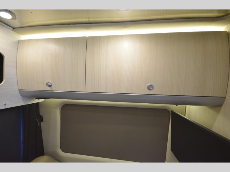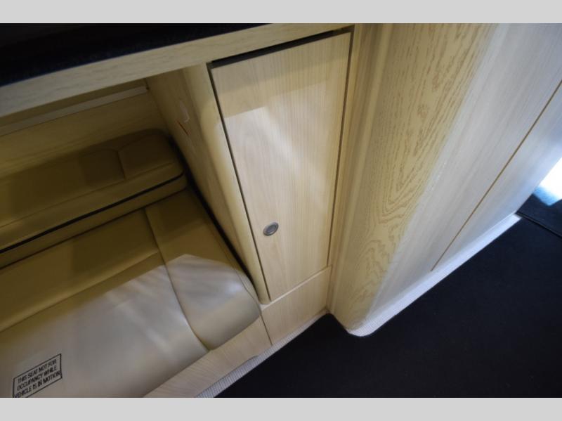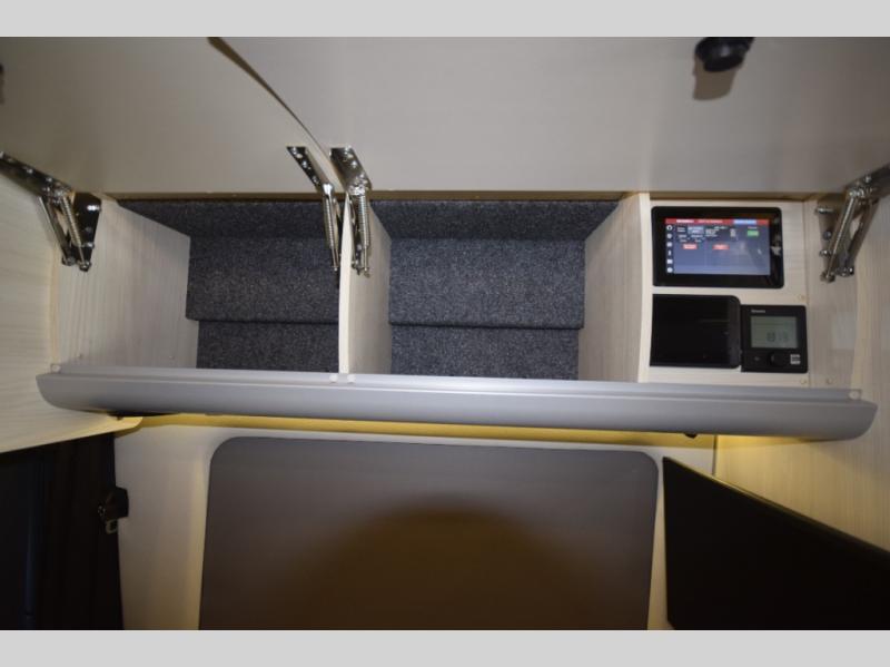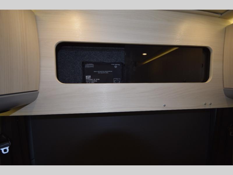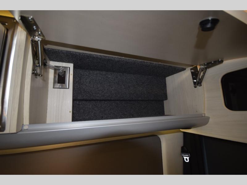 Inside, you’ll find a surprisingly spacious layout with smart storage throughout, a sleek galley kitchen, and a full wet bath—all thoughtfully designed to make life on the road easy and enjoyable. The rear power sofa and side seats convert into a spacious lay-flat bed, giving you the largest bed in its class, perfect for two travelers to stretch out and recharge.