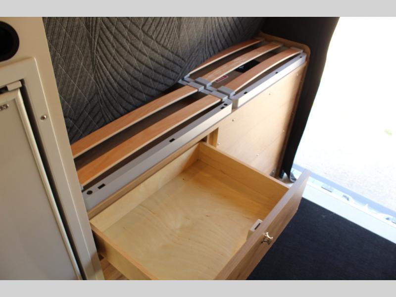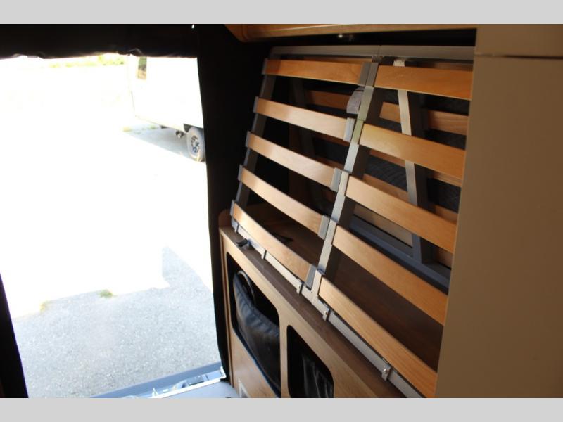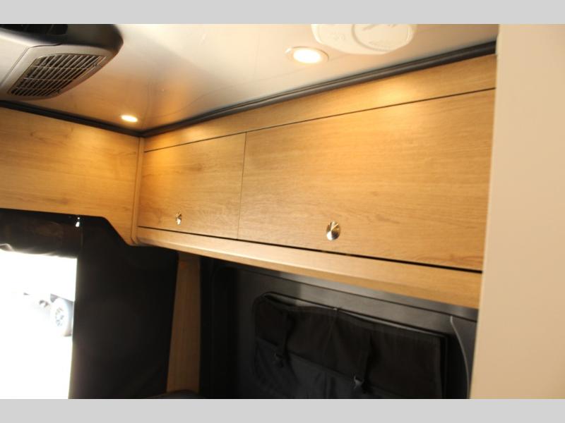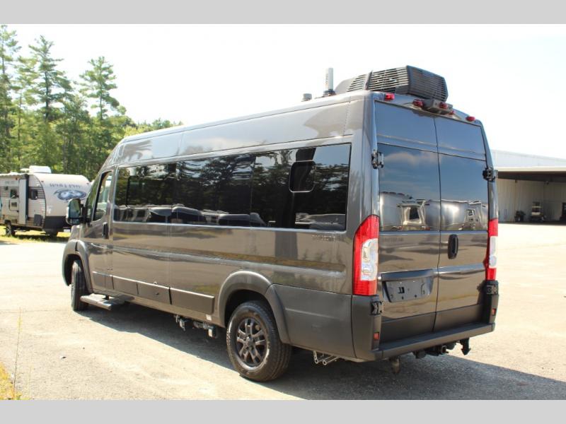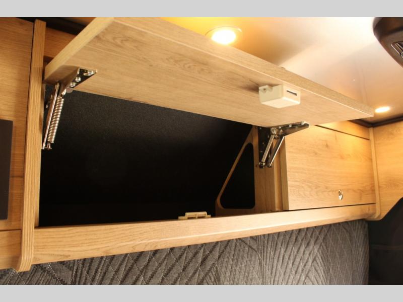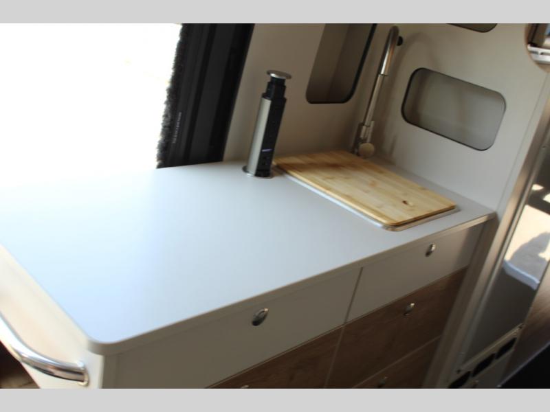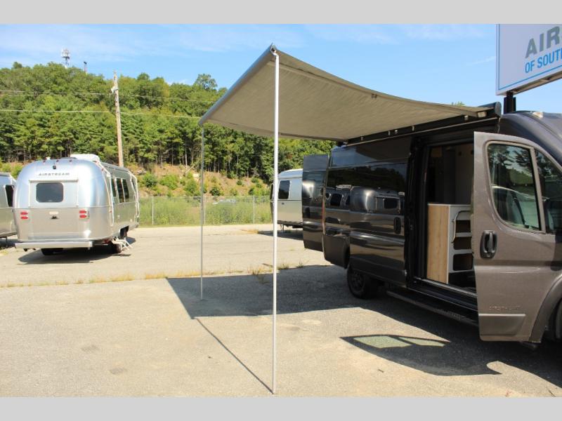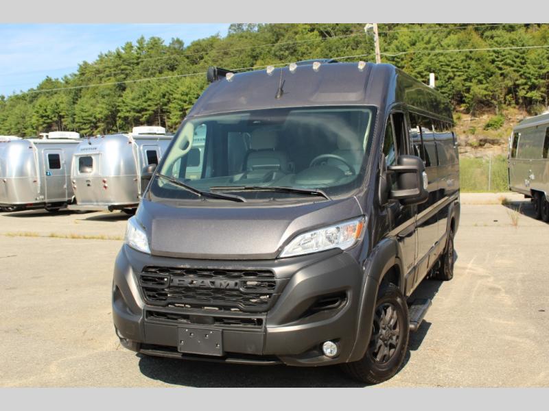 The Airstream Rangeline offers complete comfort and flexibility with great living spaces, flexible storage throughout, and all the amenities you need to enjoy travel. Its sleek design with painted grille, two interior color choices with Warm River Oak cabinets and drawers, and gray laminate countertops allows you to travel in style. The Ram ProMaster 3500 chassis offers front-wheel drive and 276 horsepower, with an efficient gas-powered heat and hot water system plus SumoSprings and SuperSprings for an overall better driving experience. Rear storage includes MOLLE panels on the rear doors to hang all your gear, and space under the bed for even more cargo. The optional pop-top roof has three screen windows and another bed, expanding sleeping capacity to four people.