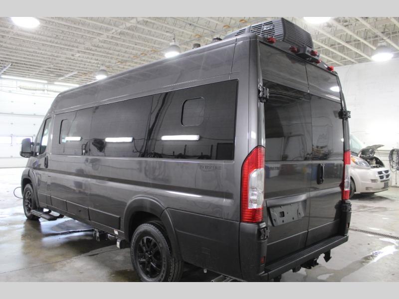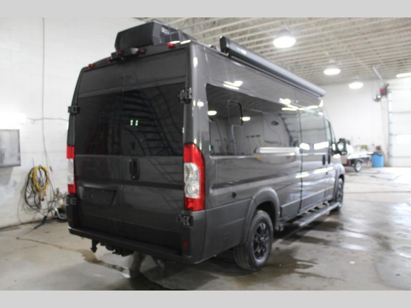 The Airstream Rangeline offers complete comfort and flexibility with great living spaces, flexible storage throughout, and all the amenities you need to enjoy travel. Its sleek design with painted grille, two interior color choices with Warm River Oak cabinets and drawers, and gray laminate countertops allows you to travel in style. The Ram ProMaster 3500 chassis offers front-wheel drive and 276 horsepower, with an efficient gas-powered heat and hot water system plus SumoSprings and SuperSprings for an overall better driving experience. Rear storage includes MOLLE panels on the rear doors to hang all your gear, and space under the bed for even more cargo. The optional pop-top roof has three screen windows and another bed, expanding sleeping capacity to four people.