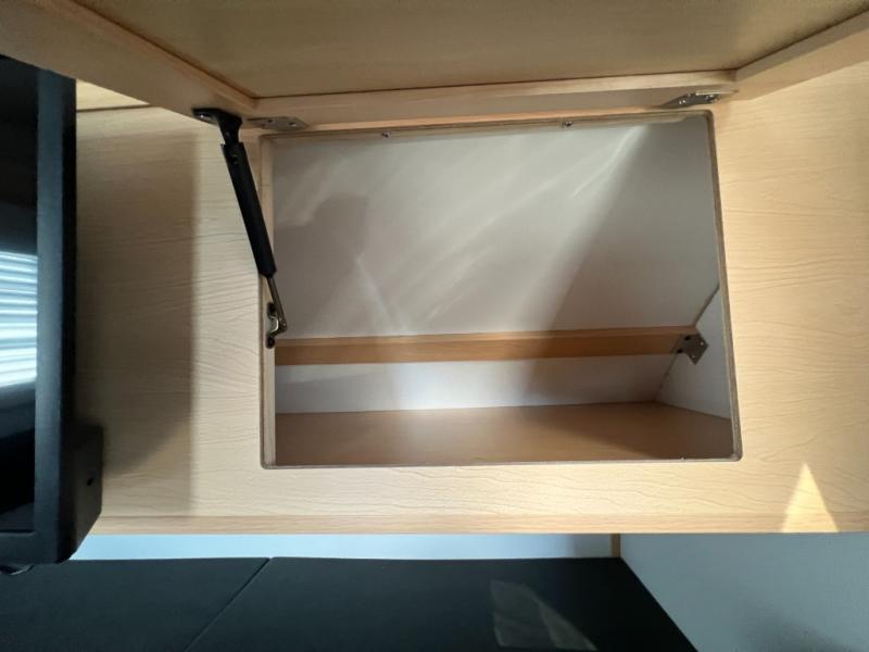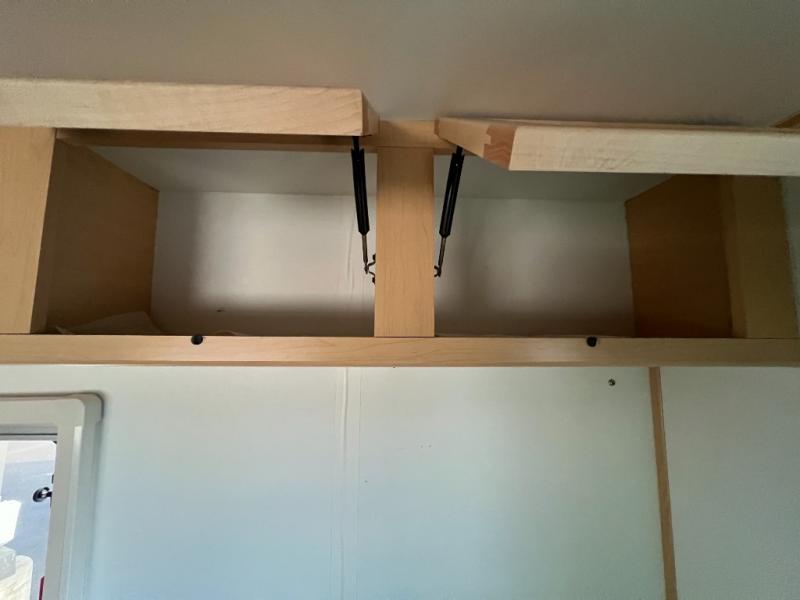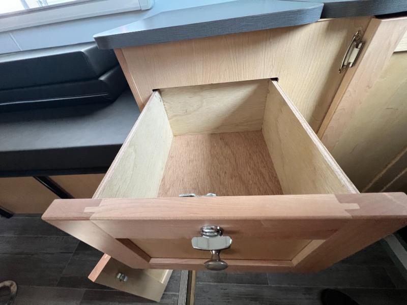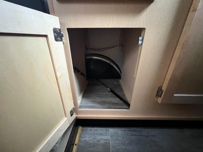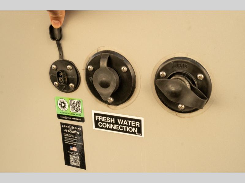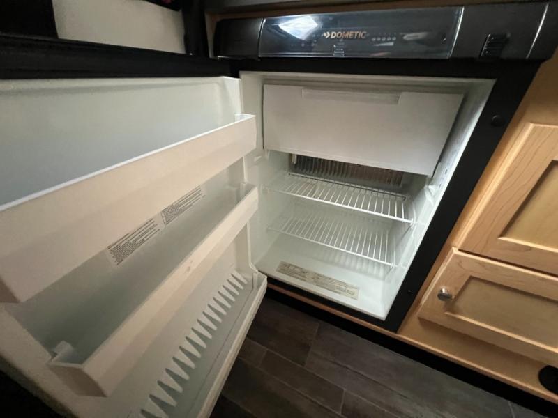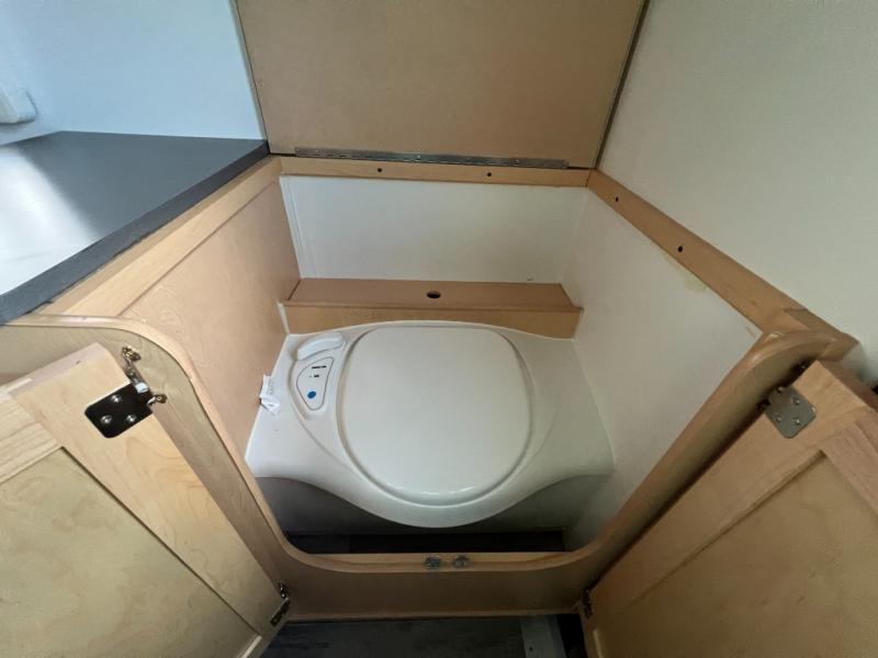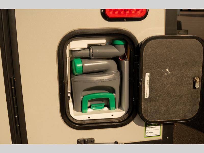 You'll love this travel trailer that features a little more interior space for a more at-home feel. There are two dinette seats with a table where you can dine each day, and this area can fold down to create a 77" x 72" bed size. You might even even want to watch movies in bed with the 23" flat screen TV! This model includes a cassette toilet so you don't have to use the camp's facilities in the middle of the night, and you can make breakfast on the two burner cooktop in the morning.