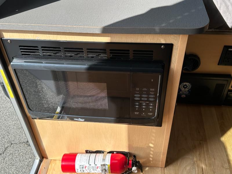 Pack your bags and be on the road in no-time with this lightweight A-frame camper that can sleep three people. You'll enjoy having a 56" x 76" permanent bed with storage underneath for your shoes or bags, and if you have a guest sleep over, they can sleep on the dinette that converts to a 46" x 76" bed. Whip up a hearty lunch on the two burner in/out stove, or use the convenient microwave oven. There is also a 3.0 cu. ft. 2-way refrigerator for perishables and additional storage space for dry goods.