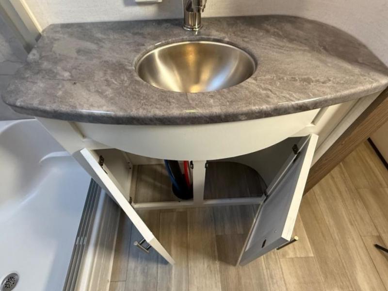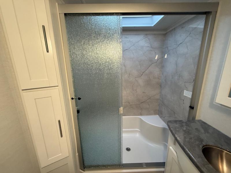 A benchmark chassis creates a space saver upper deck with each one of these Avenue fifth wheels by Alliance RV! The 101 in. wide-body construction gives you more room to walk around and the flush slide out floors throughout prevent any tripping. There are Azdel composite sidewalls inside and out, and a seamless fully walkable PVC roof for extreme durability, zero maintenance, and it is more solar reflective because of the bright white color. Twin 13,500 BTU A/C units provide 27,000 BTUs of cooling power which are ultra quiet and independently controlled keeping you comfortable during your entire trip. And, the fully enclosed and heated underbelly means that you can extend your camping season into the colder months if you like. You are sure to love the "no carpet zone" making each Avenue easy to clean and allergen free, not to mention pet friendly with vinyl flooring throughout. And, strategically placed Atrium windows in the bedroom and living area will not only provide more light, cross ventilation and fresh air, but bring a spectacular view of your surroundings right inside. You can maximize your space throughout with innovative storage solutions like the hidden storage behind the TV, inside the end tables, ottoman, and dinette chairs. Come choose your favorite model today!