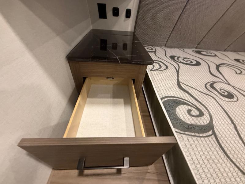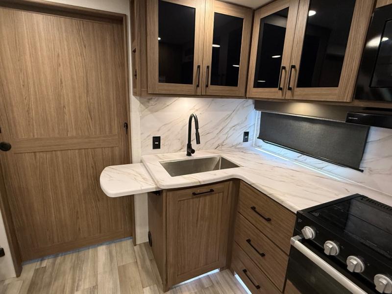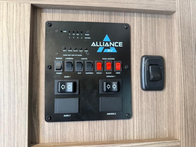 Form and function works together with every one of these Alliance RV Delta travel trailers! They are built with a walk-on roof with a seamless PVC roof covering, Mylar reinforced exterior seals, and a heated and enclosed underbelly to protect your unit in all seasons. The commercial grade vinyl flooring will be easy to clean and the oversized atrium windows throughout let in plenty of natural sunlight. With 62 cu. ft. of drop frame pass-through storage, you can bring along all of your essential camping gear plus it has USB charging for more convenience. There are many at home interior conveniences including a Bluetooth speaker, USB charging throughout, and even a pull-out kitchen trash can. Come find your favorite model today!