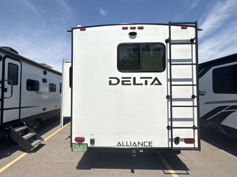Form and function works together with every one of these Alliance RV Delta travel trailers! They are built with a walk-on roof with a seamless PVC roof covering, Mylar reinforced exterior seals, and a heated and enclosed underbelly to protect your unit in all seasons. The commercial grade vinyl flooring will be easy to clean and the oversized atrium windows throughout let in plenty of natural sunlight. With 62 cu. ft. of drop frame pass-through storage, you can bring along all of your essential camping gear plus it has USB charging for more convenience. There are many at home interior conveniences including a Bluetooth speaker, USB charging throughout, and even a pull-out kitchen trash can. Come find your favorite model today!