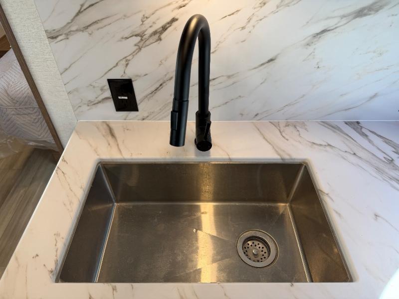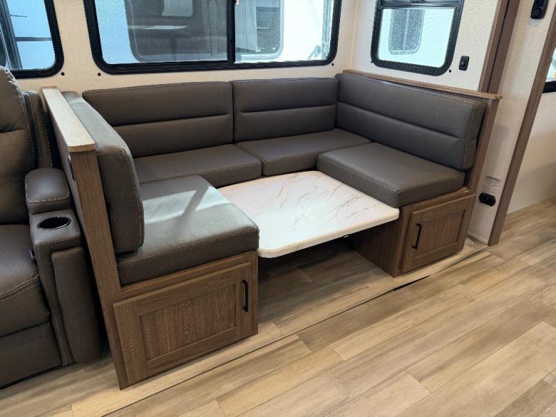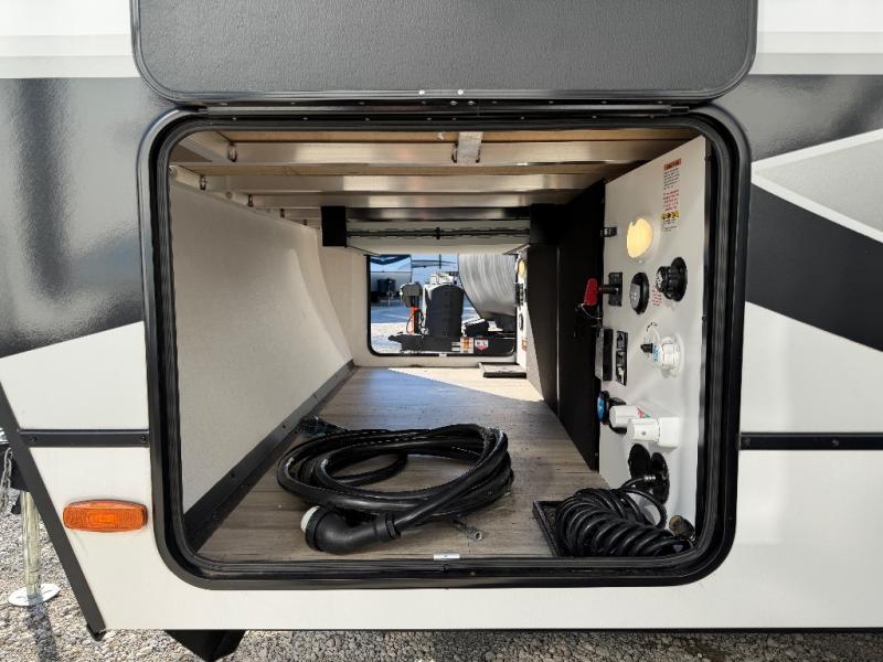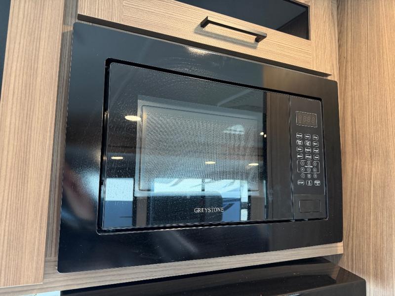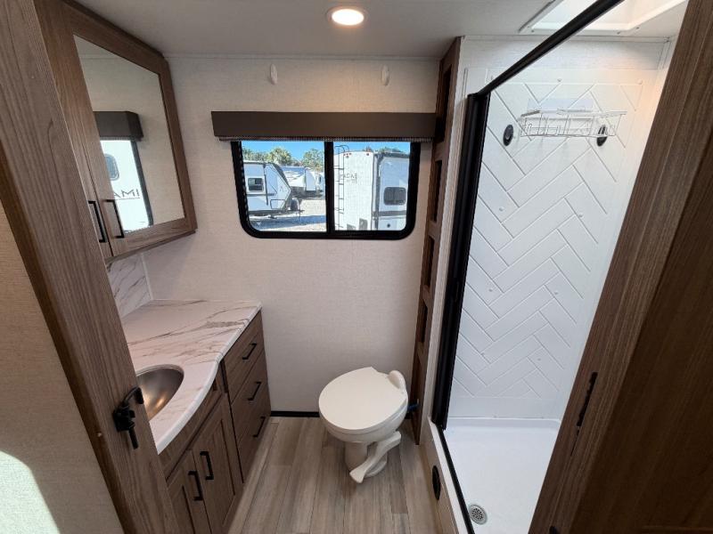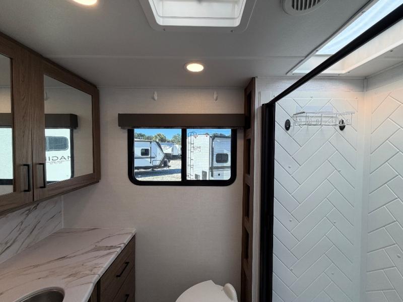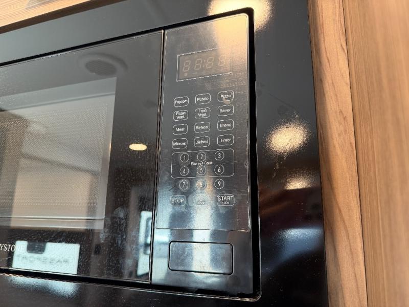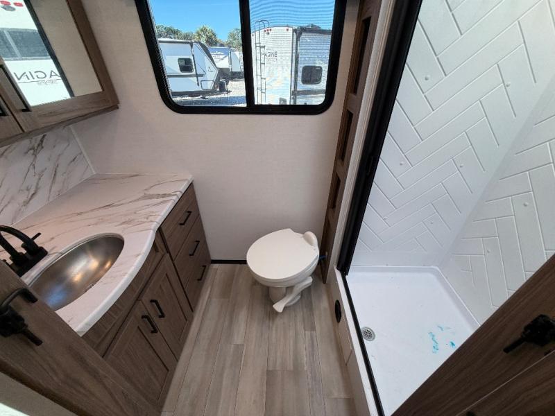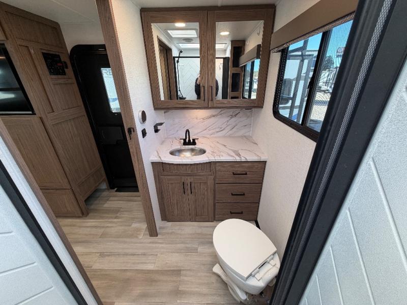 The full rear bath provides a 30" x 36" shower, vanity with sink, toilet, and a linen cabinet to store towels and toiletries. It’s the perfect retreat to freshen up after a day of adventure.