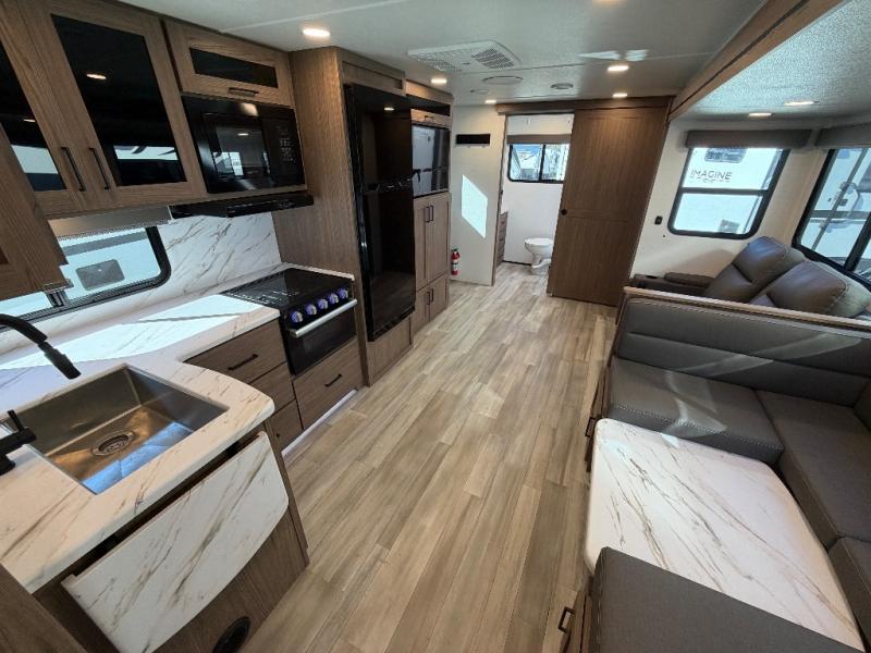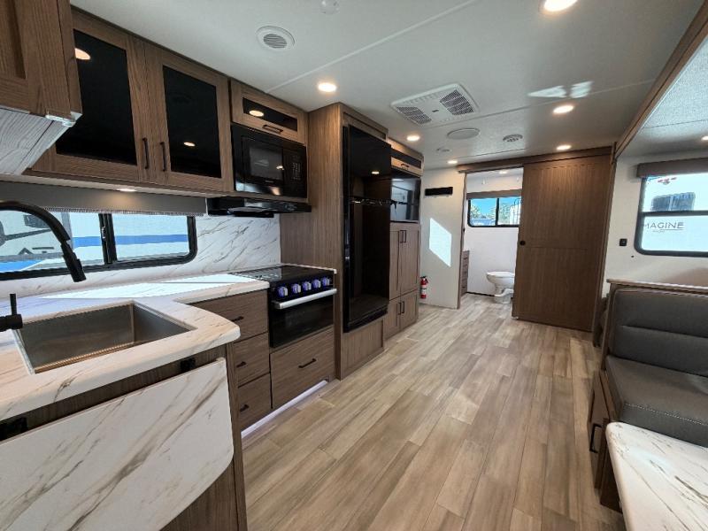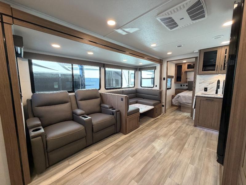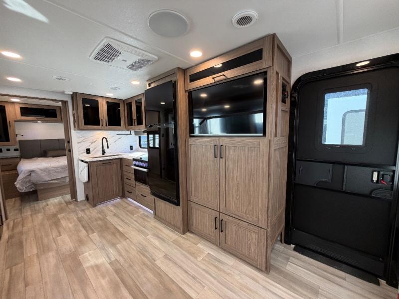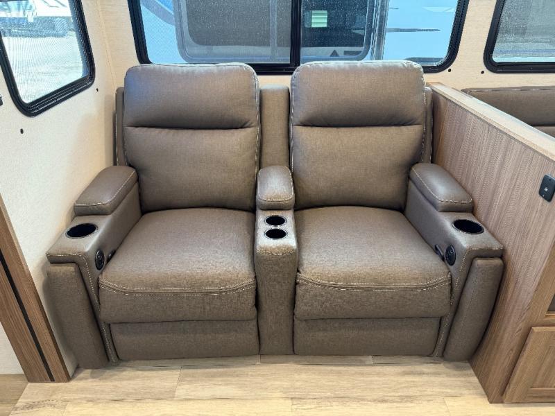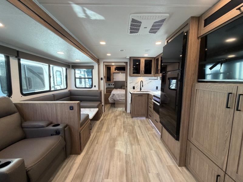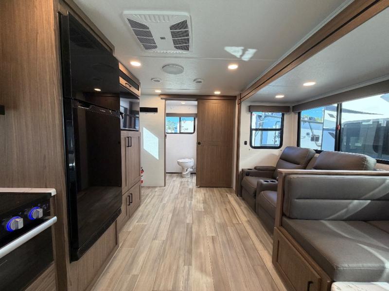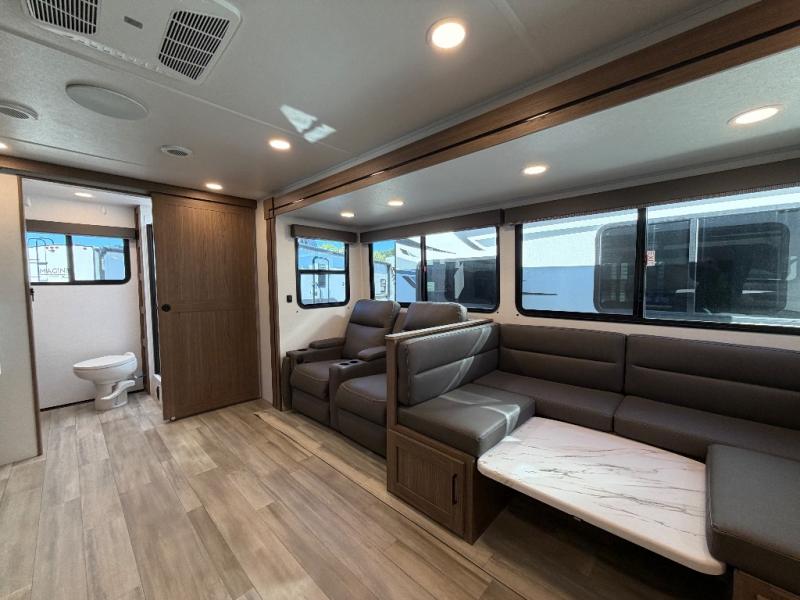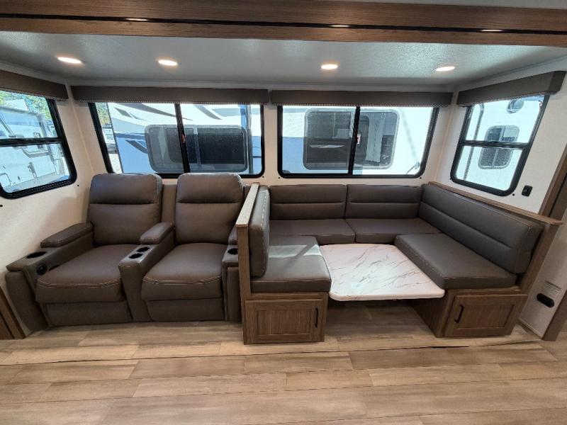 The full rear bath provides a 30" x 36" shower, vanity with sink, toilet, and a linen cabinet to store towels and toiletries. It’s the perfect retreat to freshen up after a day of adventure.